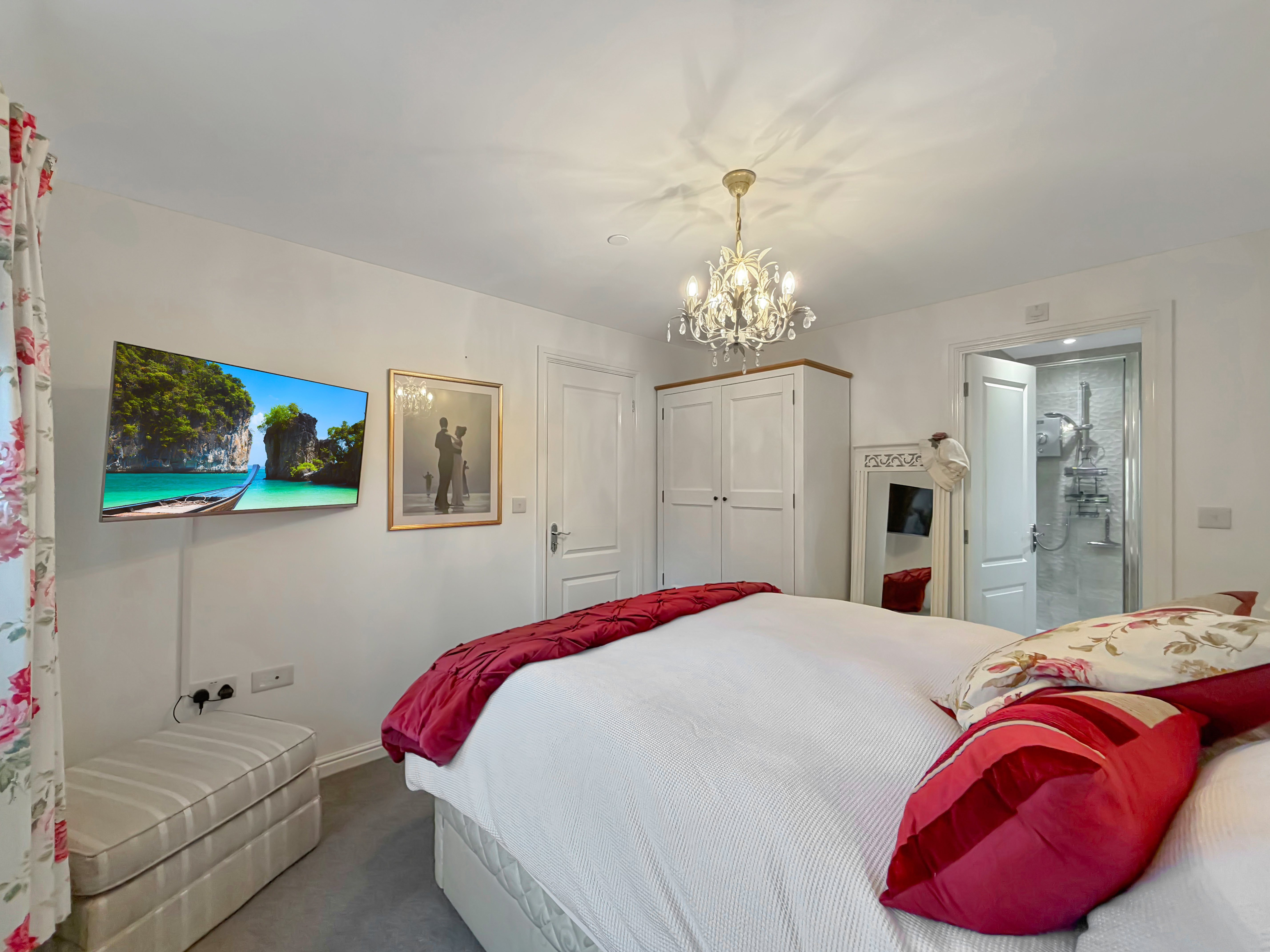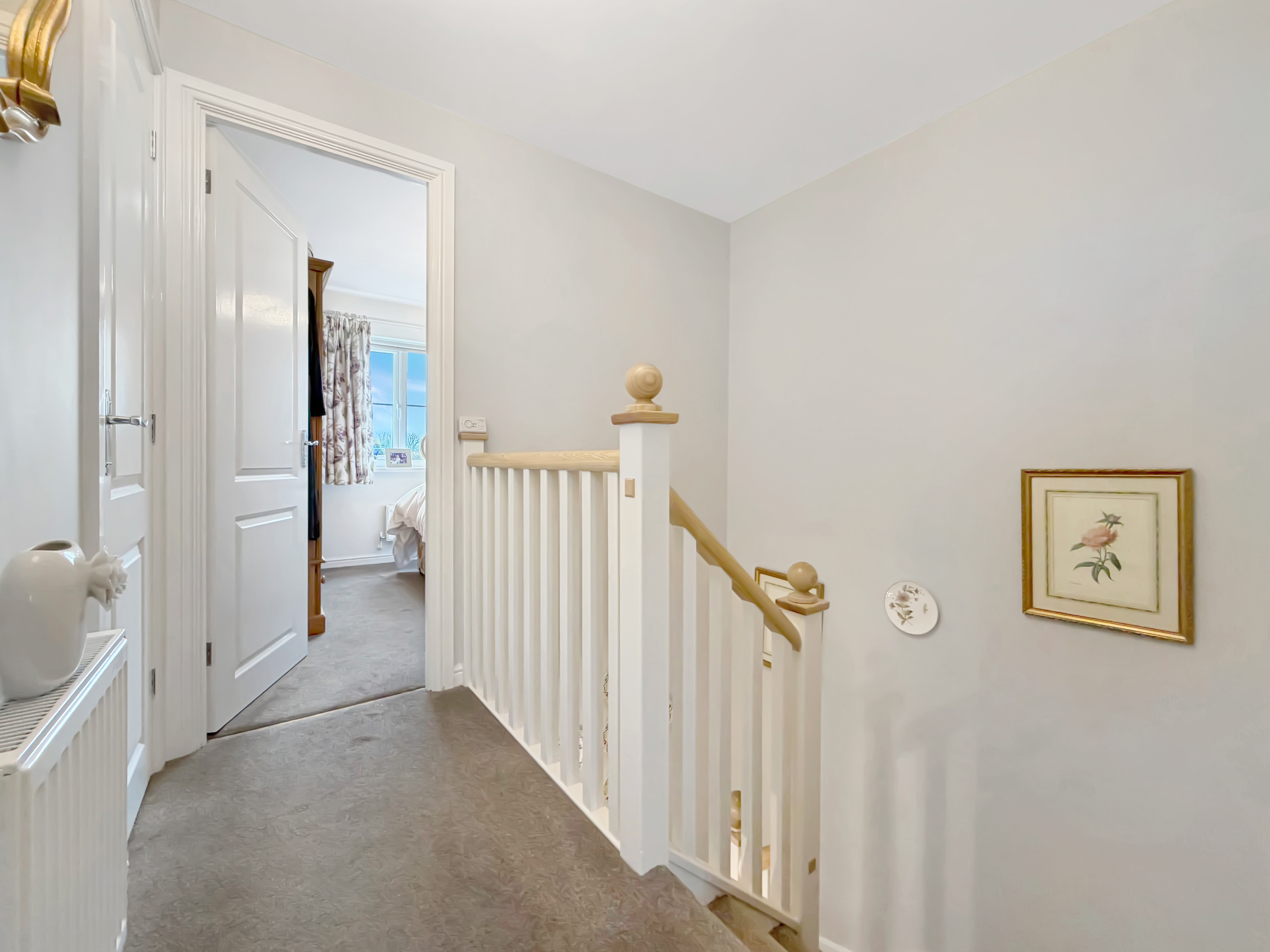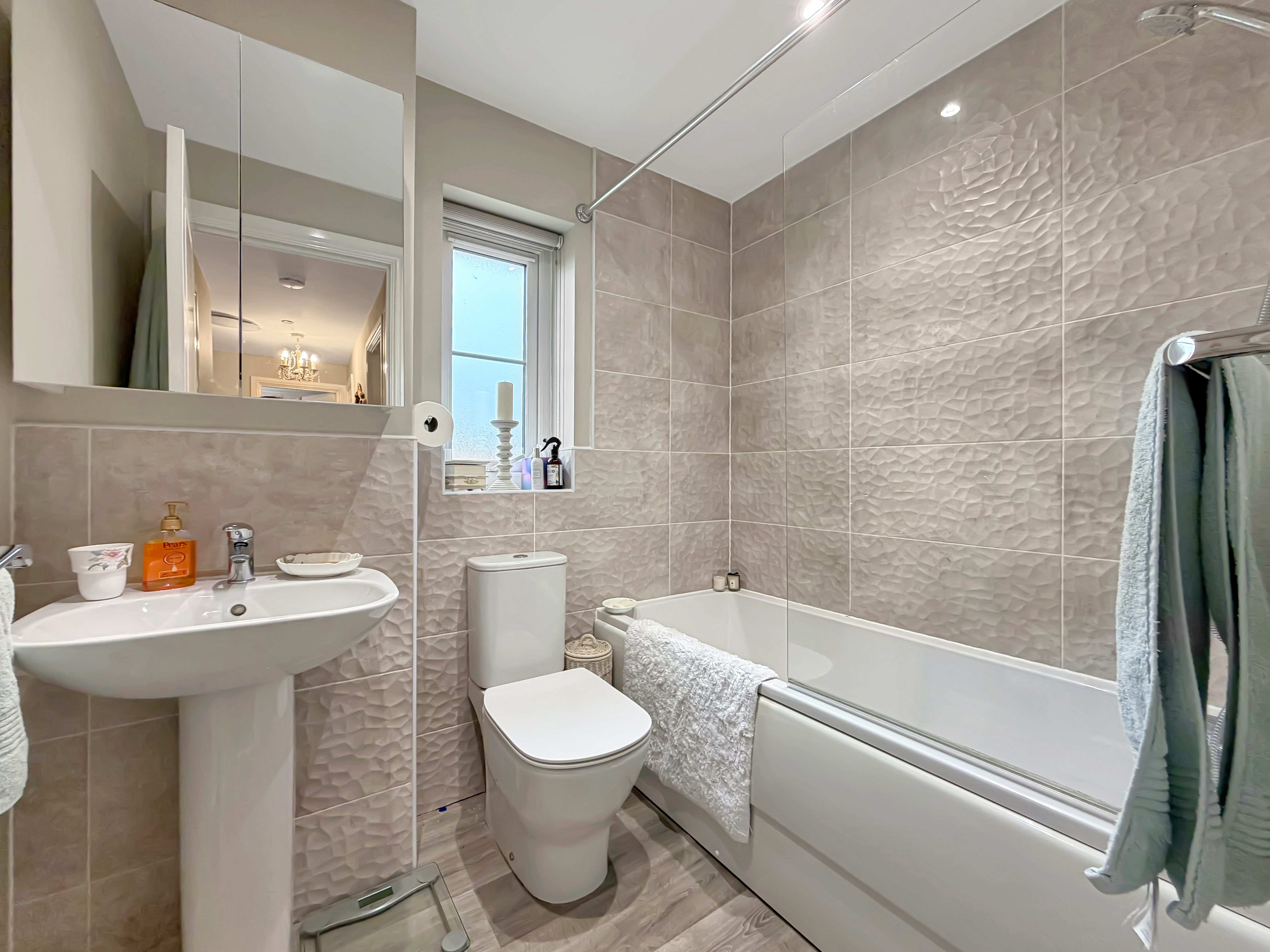 The master bedroom boasts an en-suite bathroom, providing a touch of luxury and privacy. A sleek and modern bathroom serves the remaining bedrooms, ensuring comfort and convenience for all residents. The landing has a boiler cupboard with built in shelving.