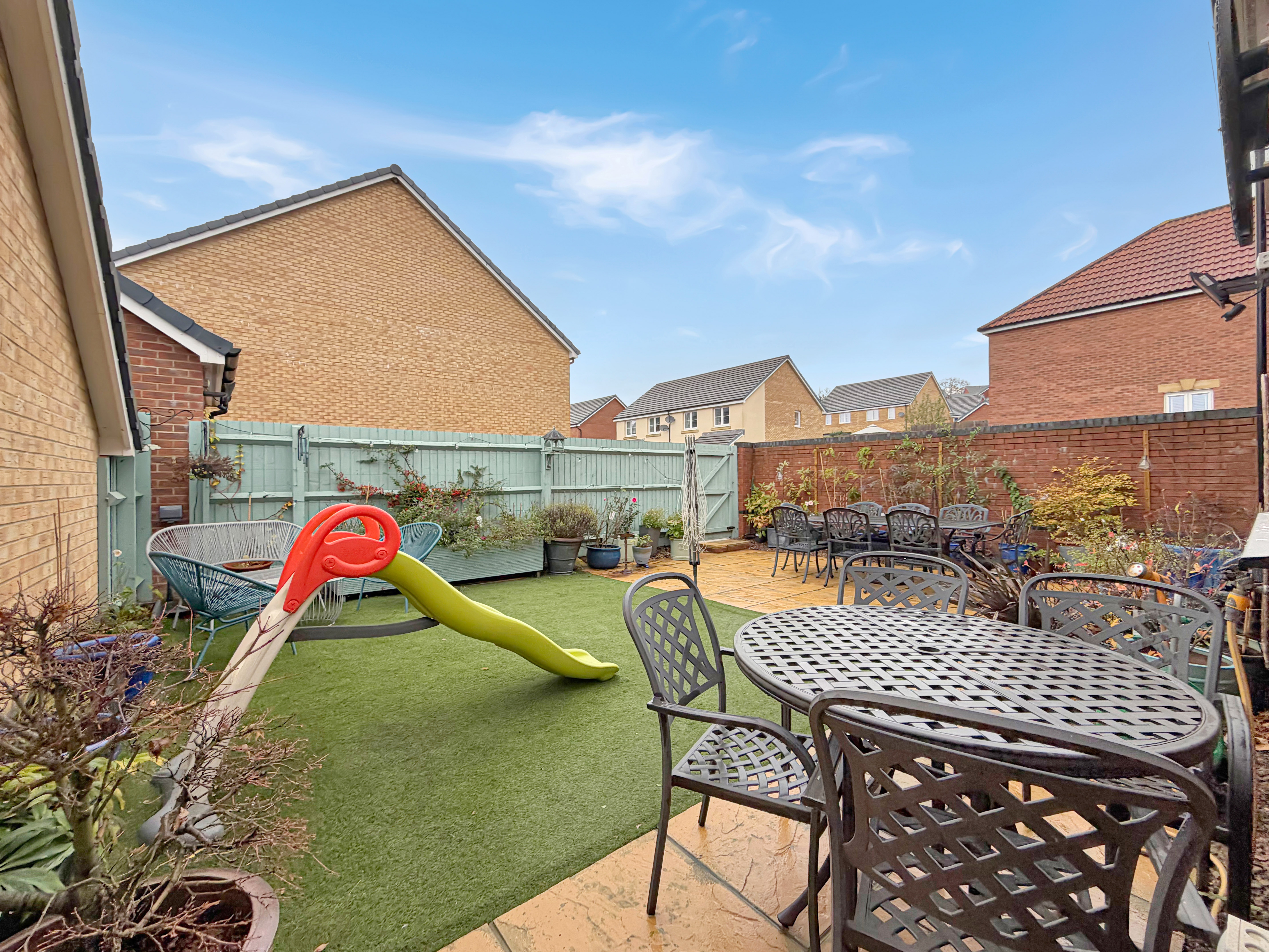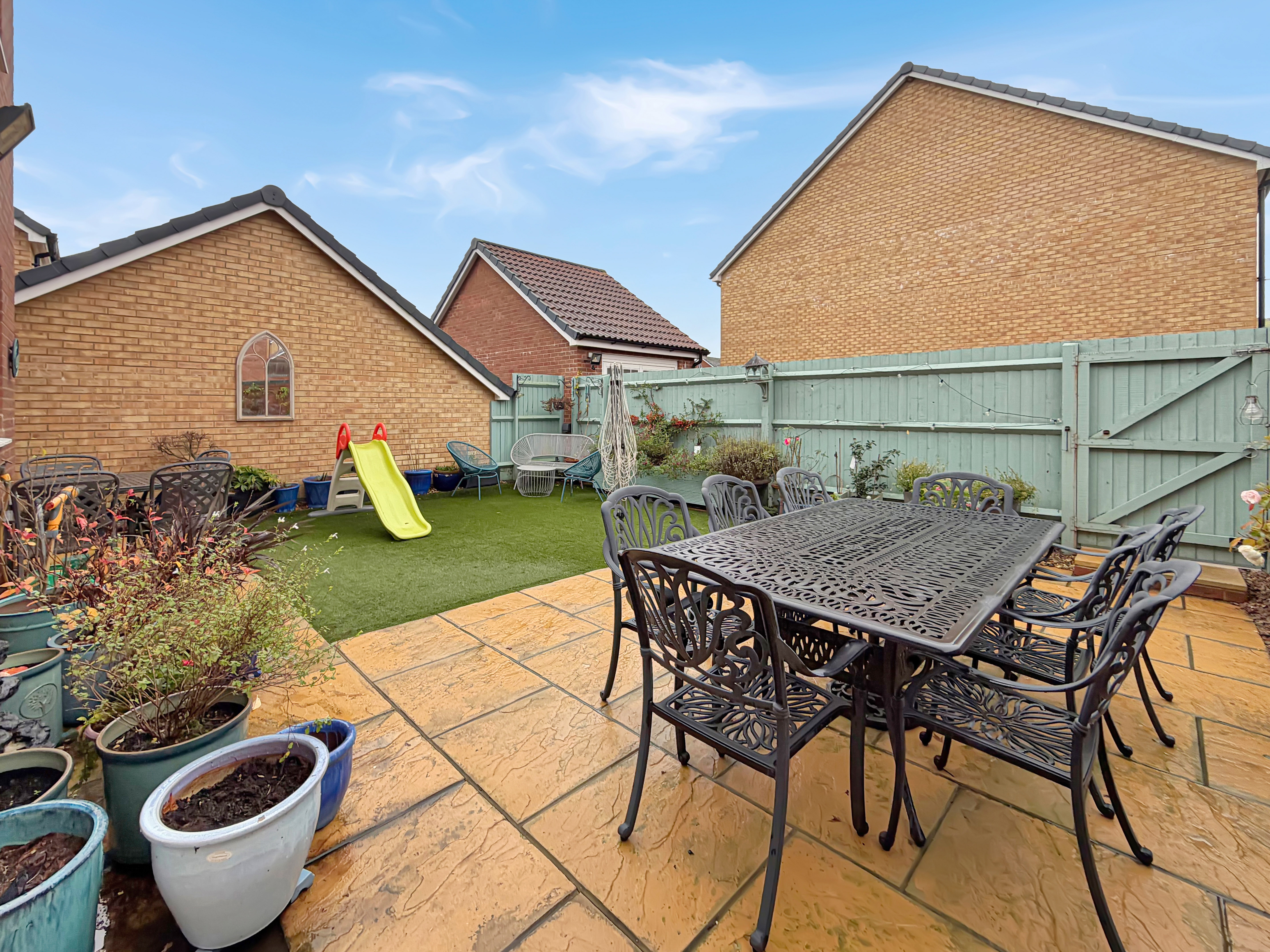 Outside, the property boasts a low-maintenance garden, perfect for enjoying outdoor activities and al fresco dining.