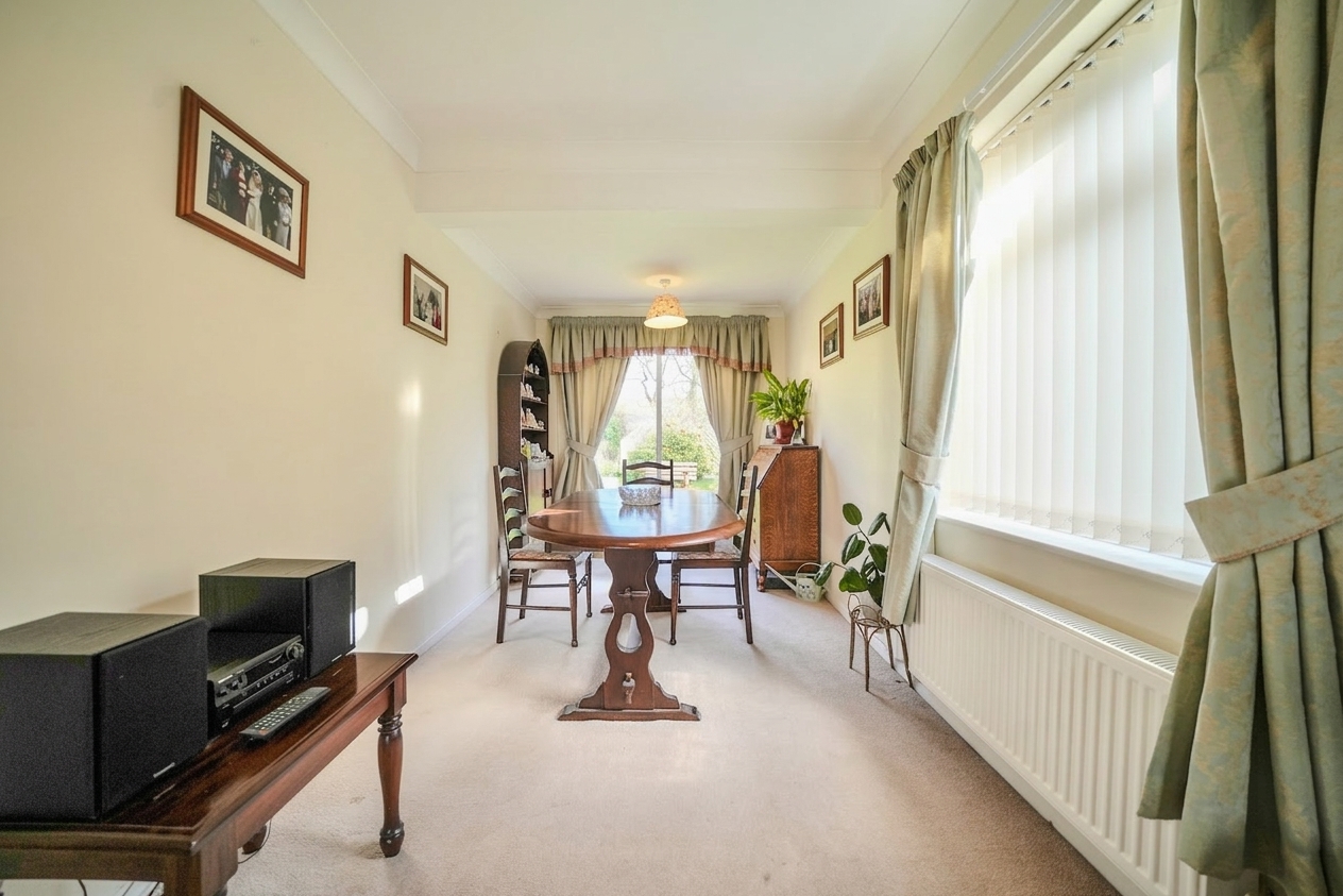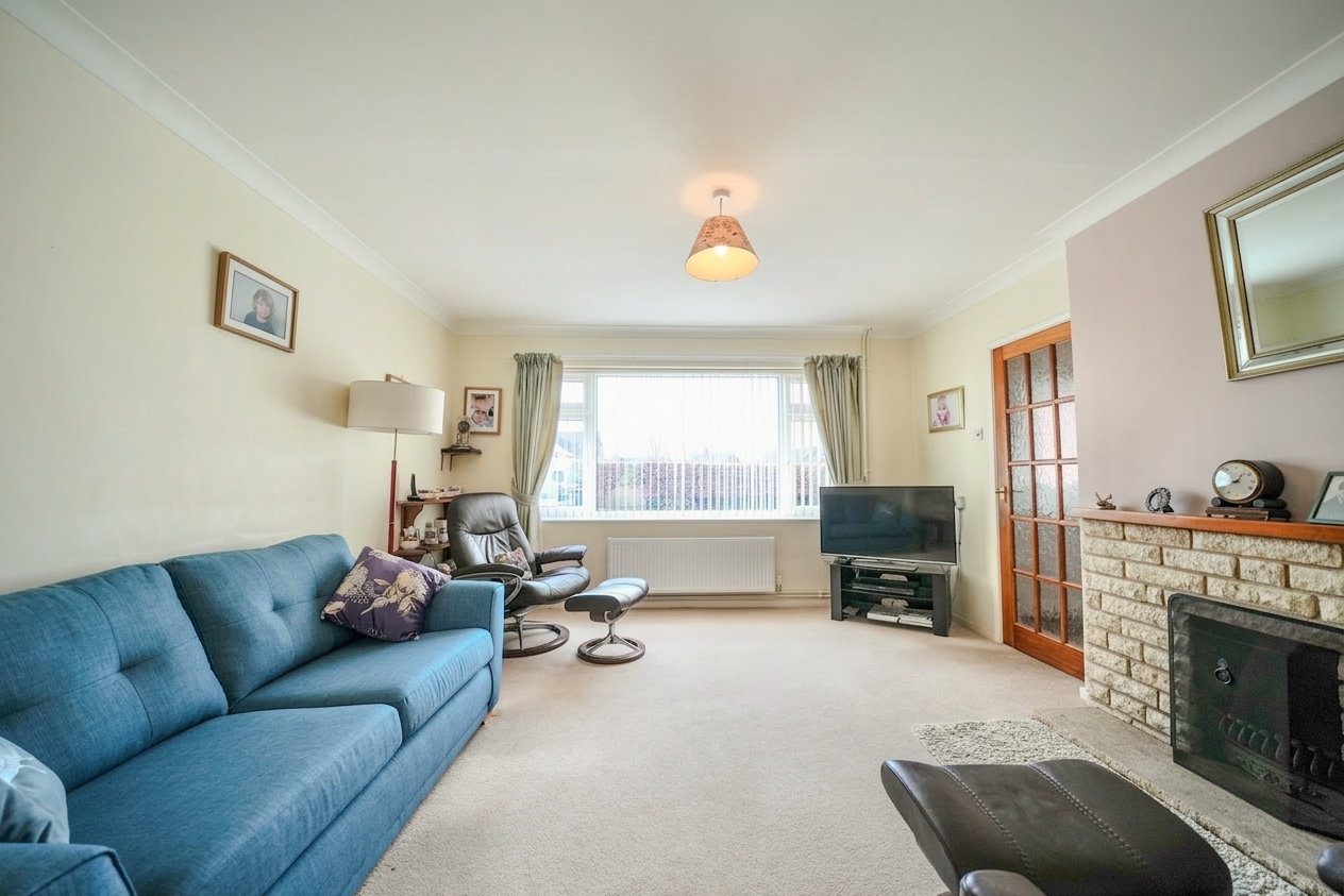 A wonderful dual aspect room with uPVC double glazed window to the side aspect, carpeted flooring, wall mounted radiator, part glazed door to the kitchen and double glazed patio doors to the rear aspect opening to the rear garden.