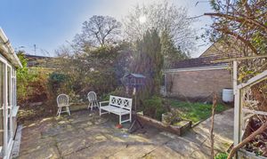 The rear garden has a westerly facing aspect and is currently arranged with lawn, hard landscaping and mature planting throughout. Gated side access.