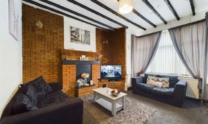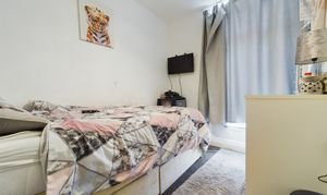 Walk in bay window to the front elevation, exposed brick wall, radiator.