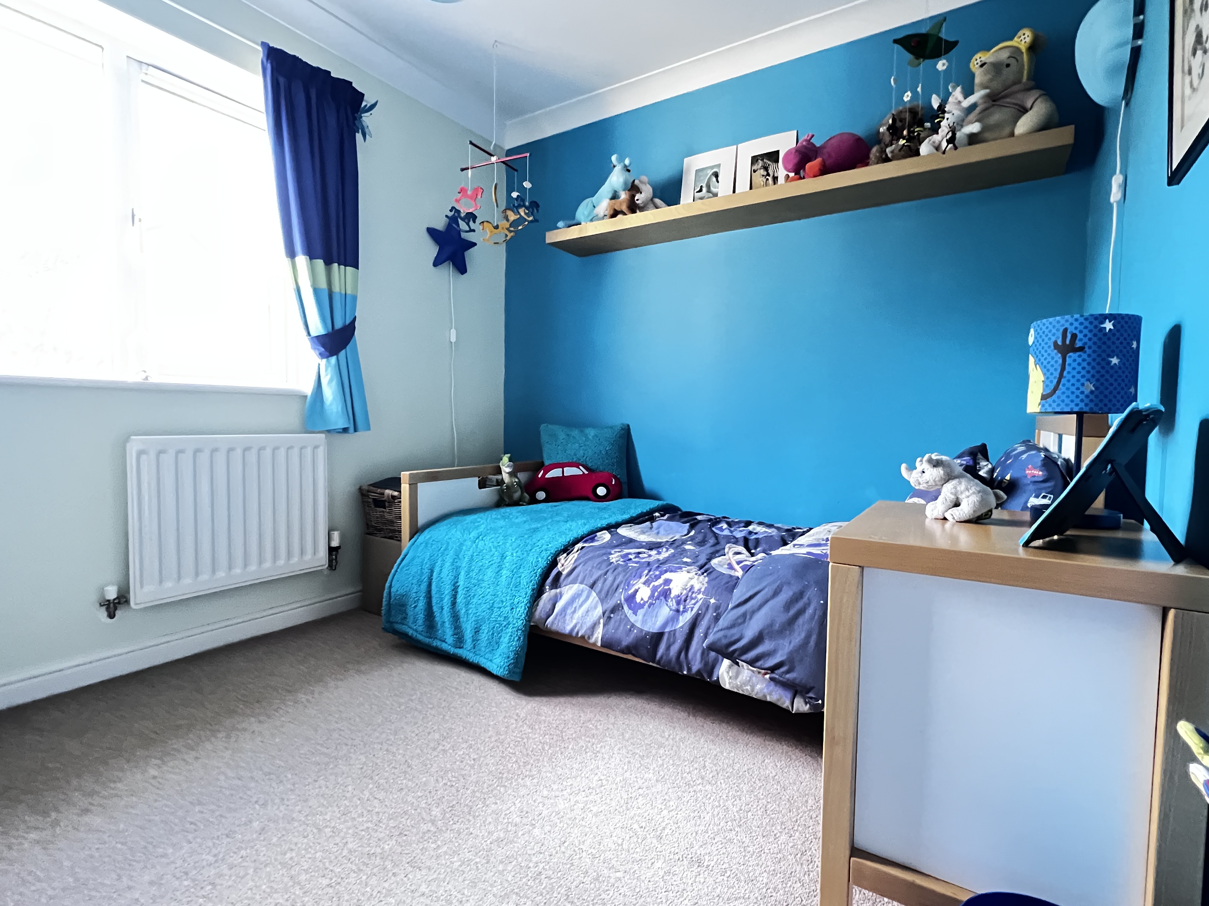 Carpeted double bedroom with rear aspect window and radiator.