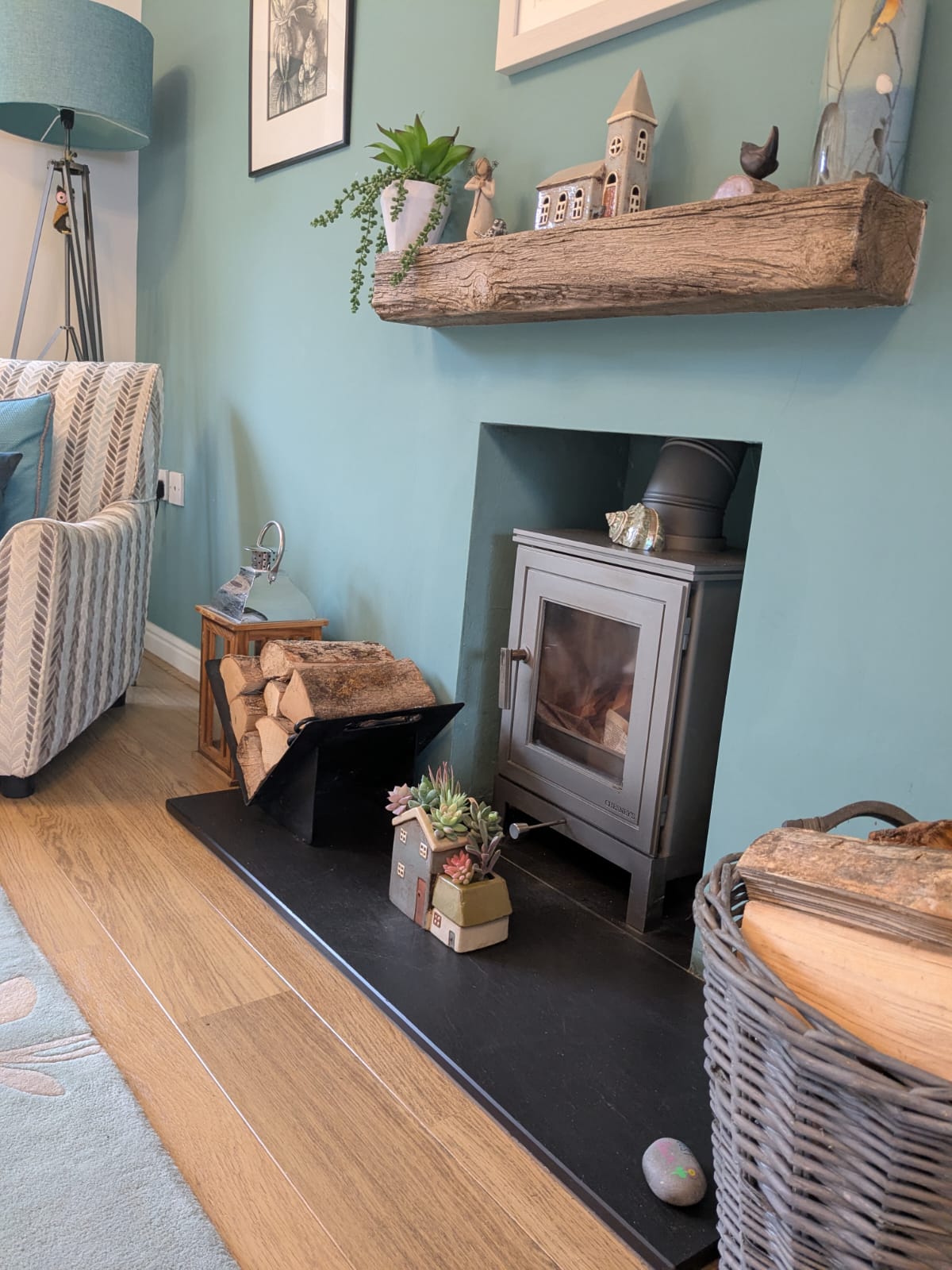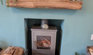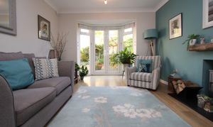 Well presented reception room with laminate floor. Smooth walls and coved ceiling. Radiator. Double opening uPVC doors out onto the garden plus front aspect window. Feature fireplace with wood burning fire.