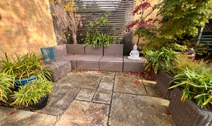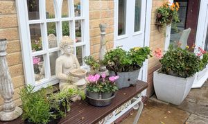 A delightful enclosed garden of a low maintenance theme. There are areas of patio and stone chippings plus an array of plants and shrubs, the best of which are seen in late spring/early summer. Outside tap and a pedestrian gate leads to the drive.