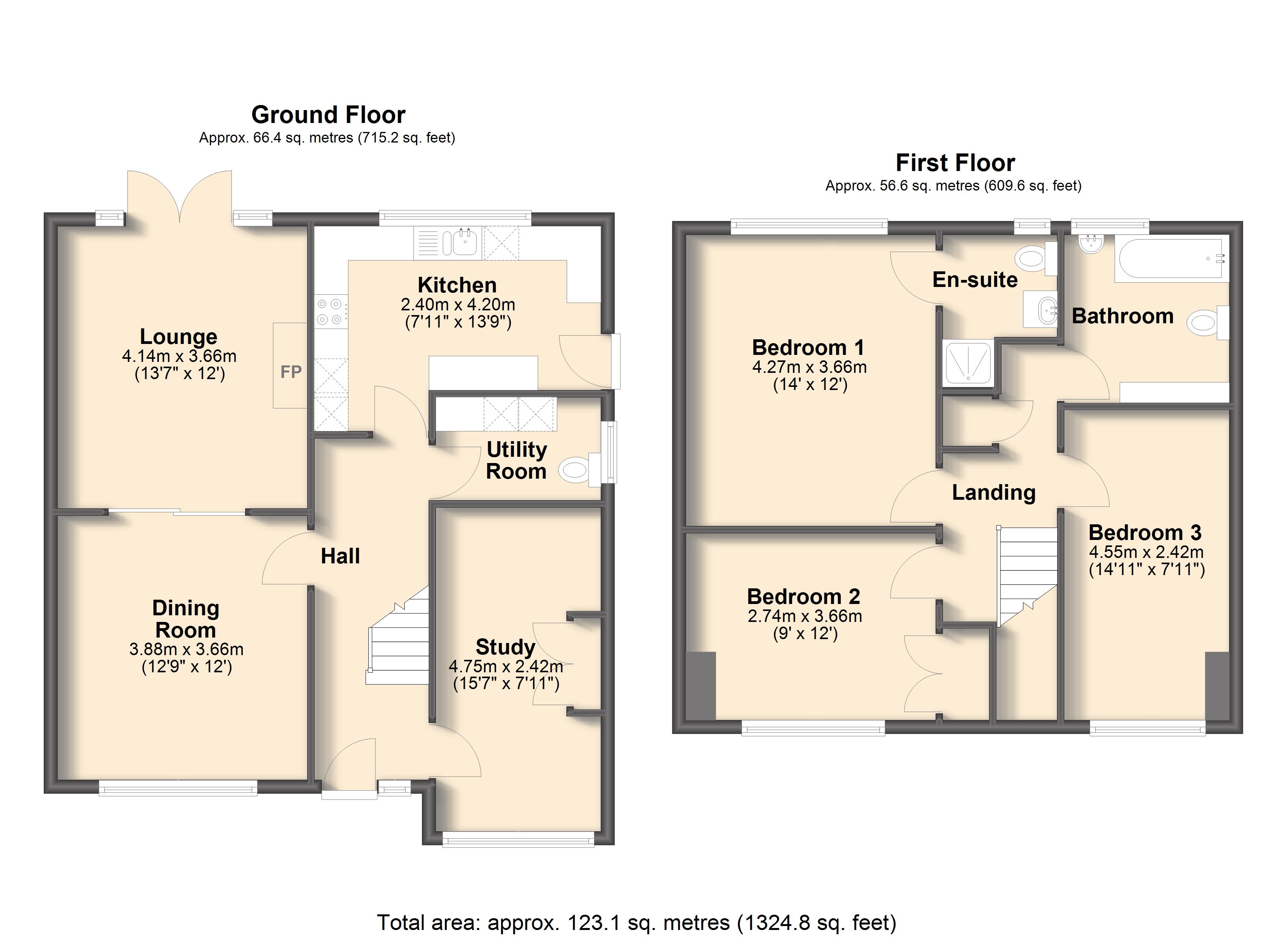 The property welcomes you with an entrance hall leading to a bright and airy lounge, whilst the separate dining room, featuring patio doors opens directly onto the rear garden, creating an inviting space for family meals and gatherings. The fitted kitchen is well-appointed with ample worktop space, complemented by a separate utility area and a convenient ground floor W.C. A flexible study/ family room completes the ground floor accommodation and is perfect for those working from home.