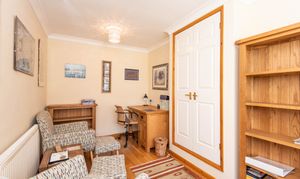 Upstairs, the principal bedroom benefits from an en-suite shower room, while two further bedrooms are served by a family bathroom. Far-reaching views from the rear of the house provide a picturesque backdrop to daily living.