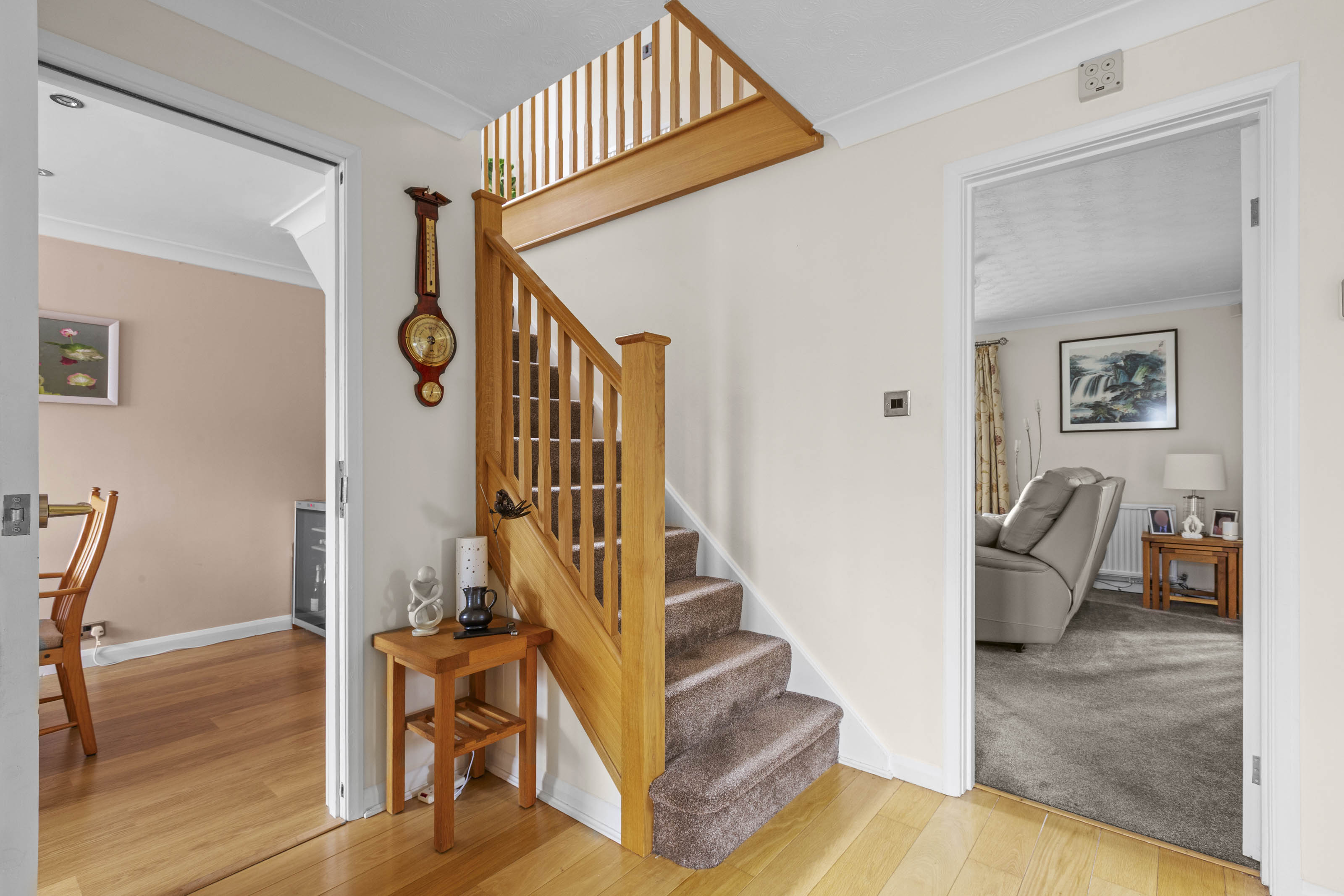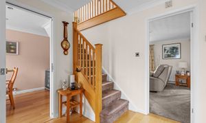 - Bright and welcoming entrance hall with coat cupboard, staircase by Neville Johnson, downstairs cloakroom and doors to all reception rooms