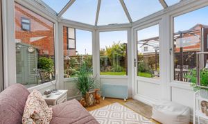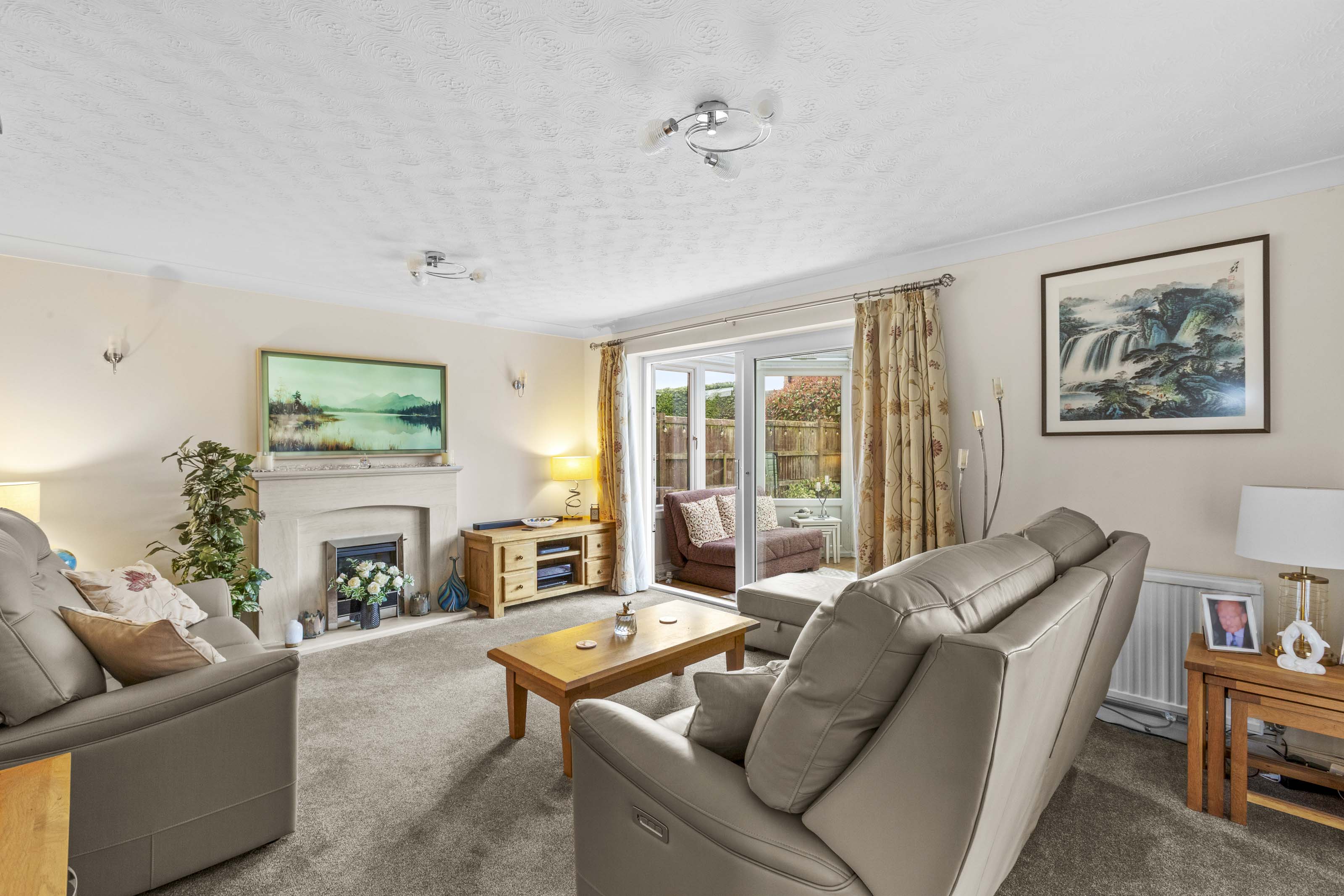 - 16'6x13'3 sitting room with feature fire and sliding doors to the light filled conservatory and separate dining room