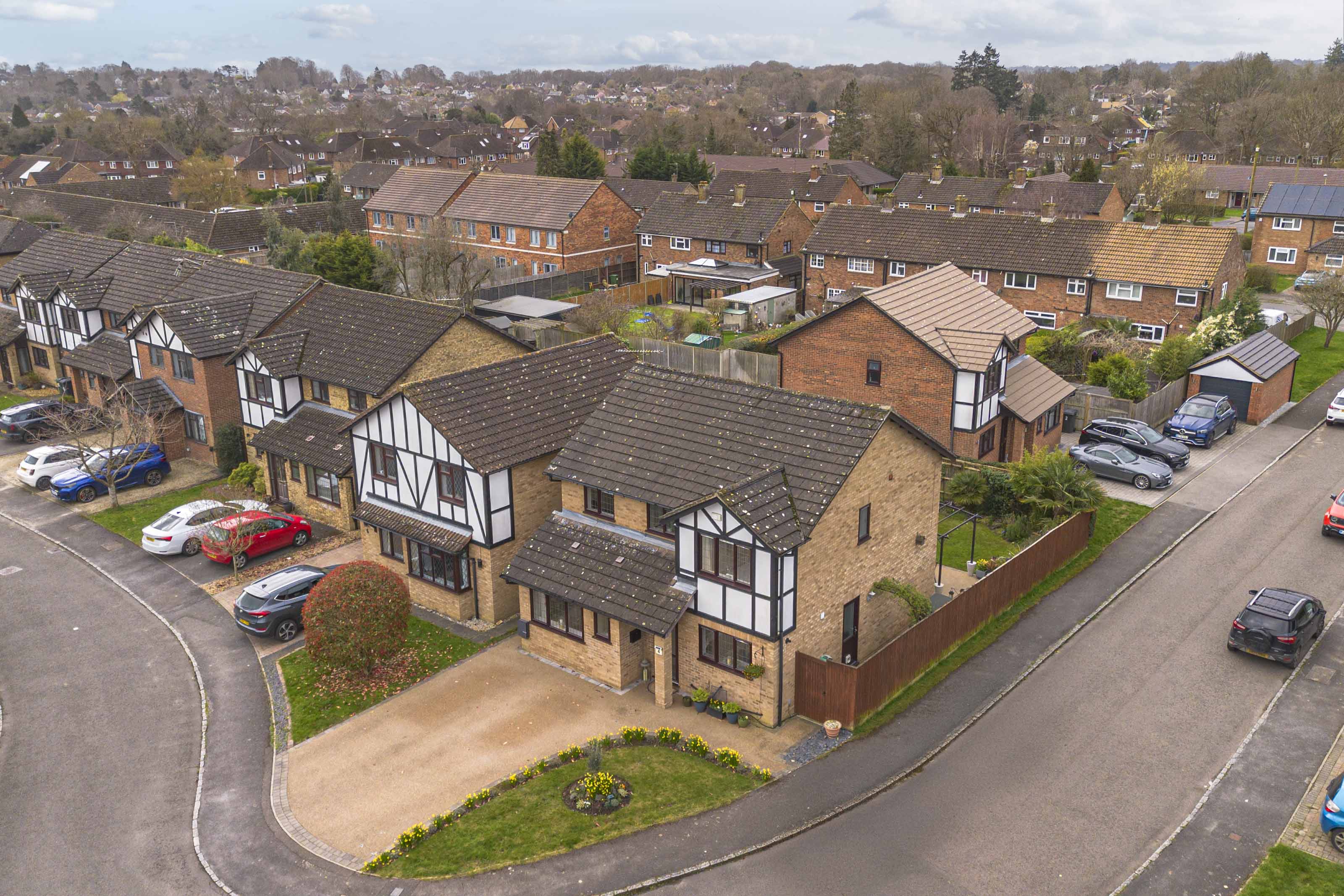 Set on a desirable south-facing corner plot within a sought-after cul de sac, this beautifully presented four double bedroom detached family home offers spacious and versatile living accommodation within walking distance to highly regarded schools, local shops, convenient transport links and picturesque countryside walks in Common Wood.