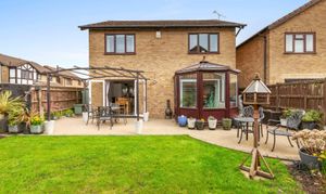 The property is further enhanced by a delightful landscaped rear garden with a large resin patio area leading to a level lawn, flanked by mature flower borders and complemented by three useful storage sheds. To the front, a spacious resin driveway provides parking for up to four vehicles with an Anderson A2 electric vehicle charging point and gated access to the rear garden, adding to the property’s practicality. This exceptional family home combines generous proportions, high-quality finishes and a prime location, making it an outstanding choice for those seeking both comfort and convenience in a friendly and well-connected community. Early viewing is highly recommended to fully appreciate the quality and lifestyle on offer in this impressive detached residence.