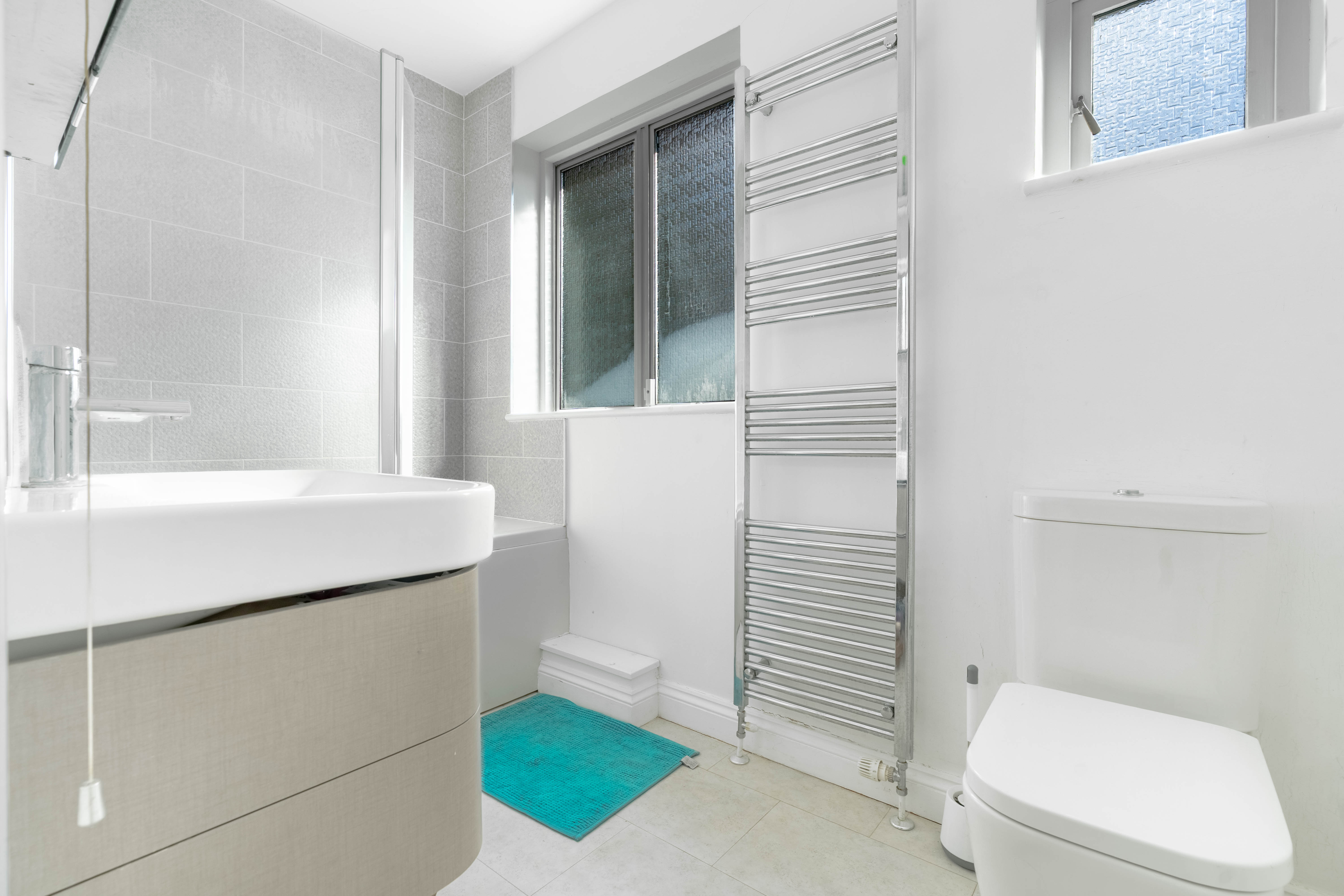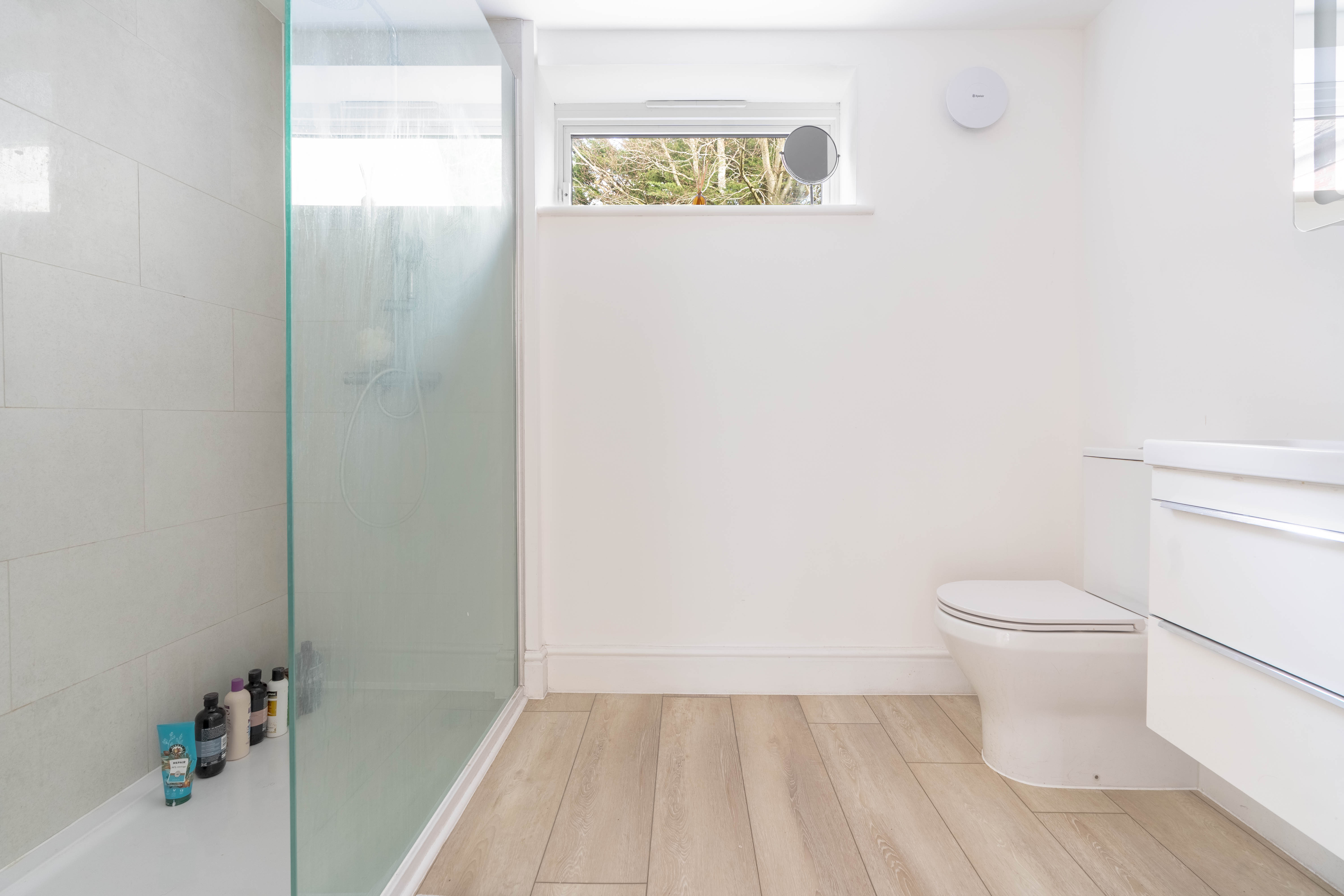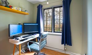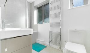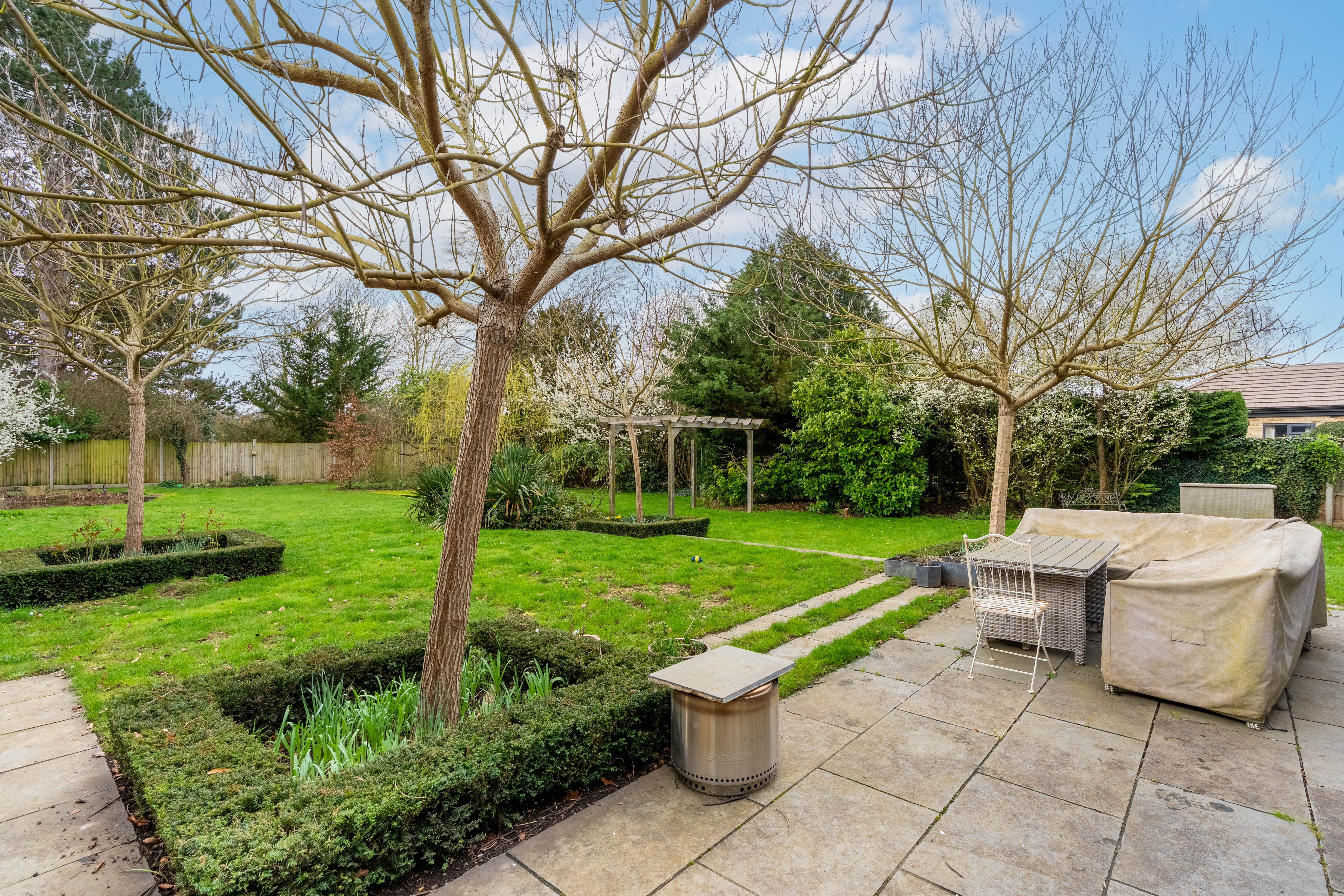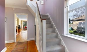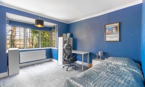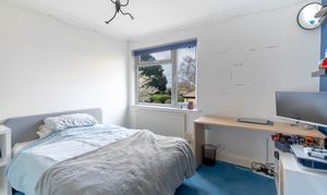 At the end of the landing you will find the main bedroom, a generous and light-filled space with large windows overlooking the expansive garden. The room also benefits from its own en suite bathroom, creating a comfortable and private principal suite.