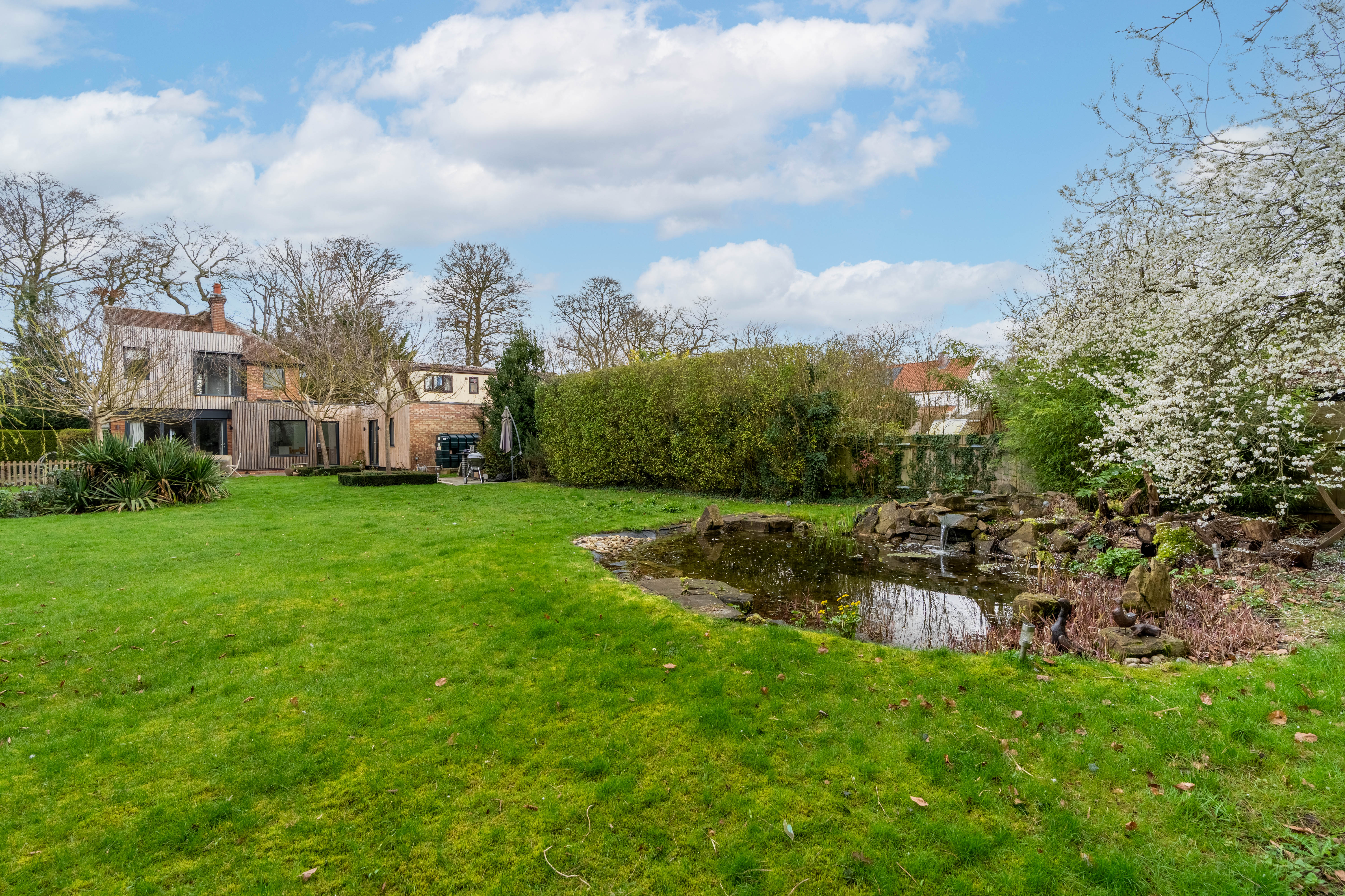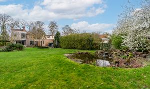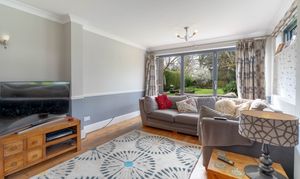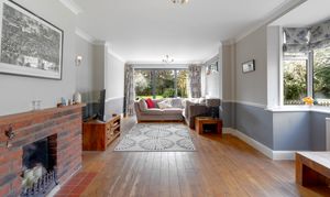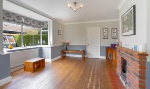 As you step inside, you are welcomed by a practical entrance area offering plenty of space for coats and shoes, creating a convenient and organised entry point to the home. From here you move into the expansive living room, a truly impressive space filled with natural light from the many surrounding windows. Bifold doors open directly onto the sunny garden, seamlessly connecting indoor and outdoor living, while a large open fireplace provides a wonderful focal point and adds warmth and character to the room.