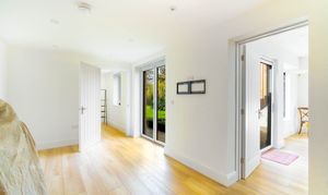Continuing through the ground floor, you will find a spacious downstairs bedroom complete with its own en suite. This room is an excellent size and also benefits from an additional adjoining room which could be used as a dressing room, private study or nursery. The bedroom also enjoys direct access out into the garden, offering a peaceful and private retreat within the home.
