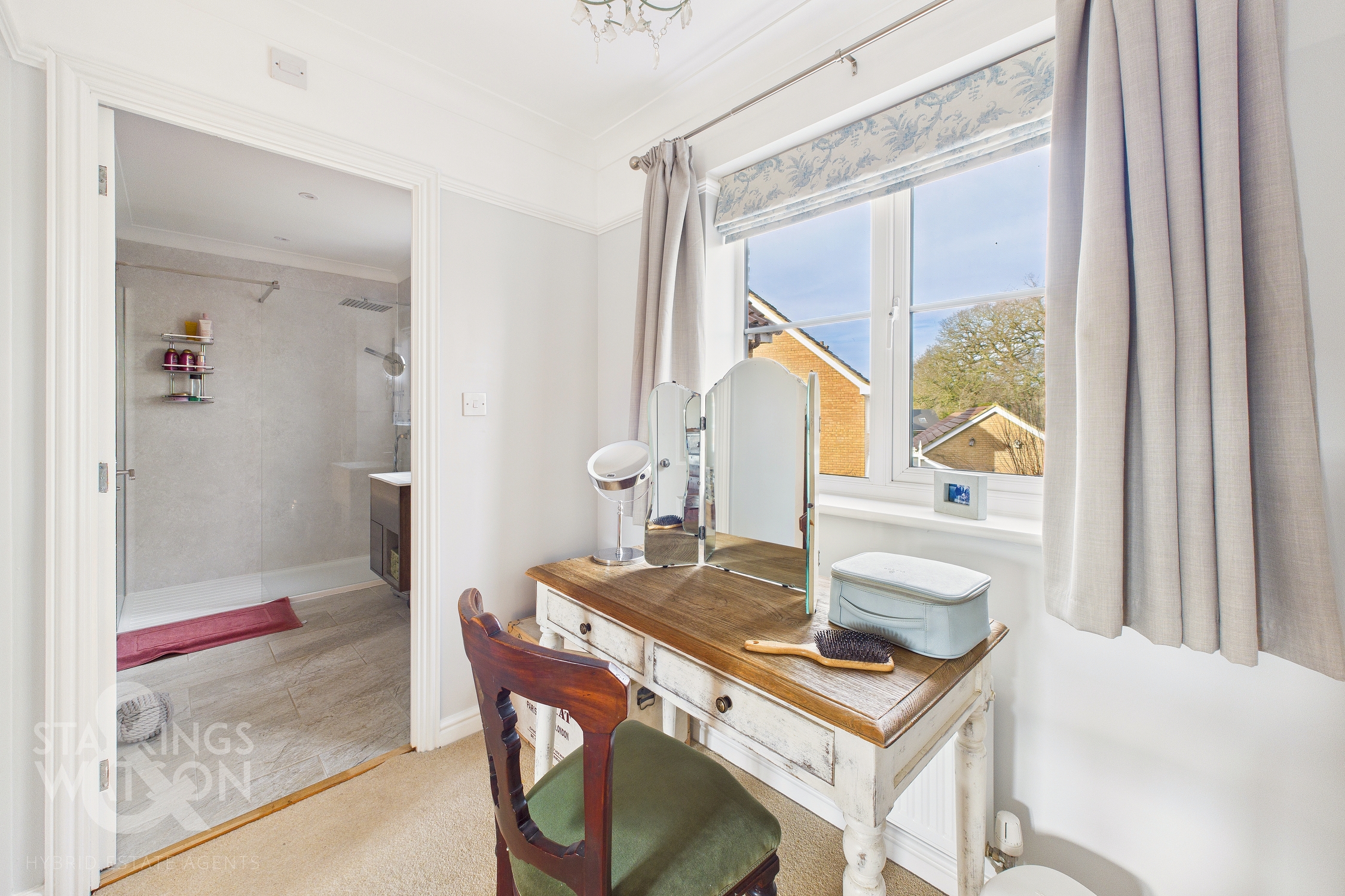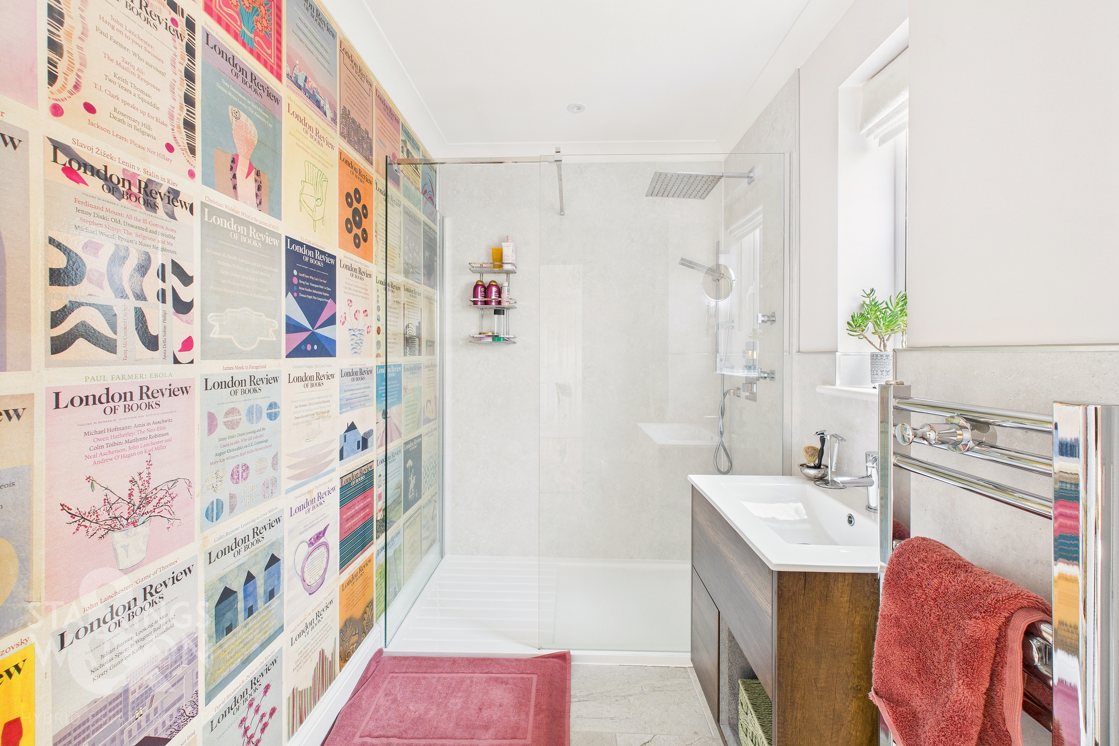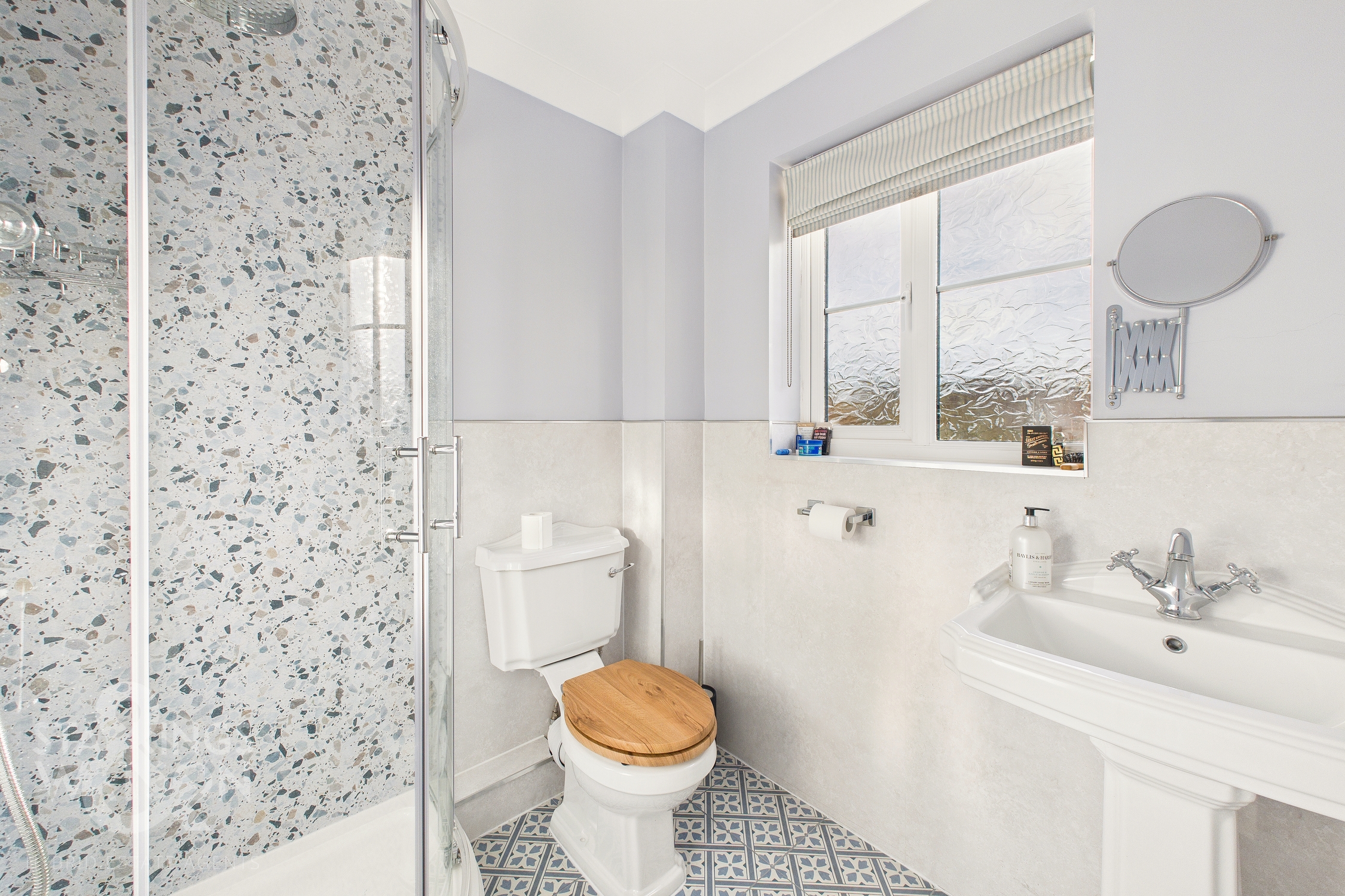 In total five bedrooms are on offer within the home with with the first three of the double bedrooms coming on the first floor, the main bedroom sits to the right hand side again benefiting from a dual facing aspect. This room is very generous in size with a large open carpeted floor space conducive to potential choice of layout, soft furnishings and storage solutions with the added addition of a dressing room area sat in front of built in double wardrobes. The en-suite for this room has recently been renovated by the owners to create a unique and tasteful setting with floating vanity storage, heated towel rail and walk in shower unit featuring a rainfall shower head. On the adjacent side of the home two further double bedrooms can be found with the larger again benefiting from an en-suite shower room whilst the second double bedroom sits towards the very rear overlooking the gardens and still offering more than enough space for a double bed with storage solutions. Sat between each of these bedrooms is the three piece bathroom suite, which again has been tastefully modernized by the current owners with a high end finish creating a welcoming feel. Tiled flooring gives way to a bath with over head shower and glass screen, mounted vanity storage and sleek modern heated towel rail.