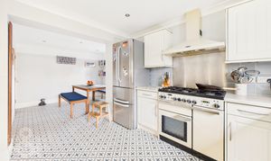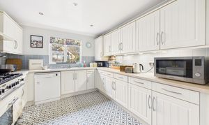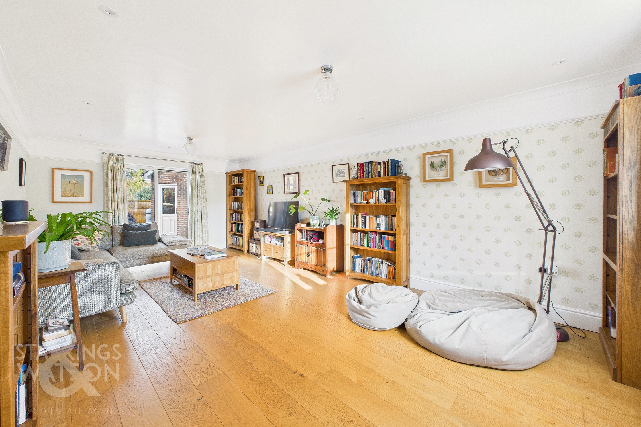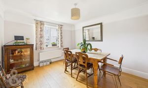 The central hallway is the first space to greet you within the home laid with solid oak flooring setting the tone for the remainder of the home. From here all three reception rooms can be found with the main and larger space to your right hand side coming in the form of a 22’ dual aspect sitting room which backs onto the garden through uPVC double glazed sliding doors and allows natural light to fill the room. Due to its large conventional size, a potential choice of layouts can be had within this space. To the left hand side of the central hallway a separate dining room can be found with a continuation of the hard wearing solid oak flooring ideal to be used as a formal dining room however does hold potential to be changed into a snug/sitting room, children's playroom or ground floor study if wished. Just behind the stairs for the first floor is a functional two piece WC with low level radiator and corner wash basin. The kitchen/dining room opens up just beyond this again with another dual facing aspect. This room is incredibly well lit in part with the tasteful décor where initially the floor space opens up to allow room for a breakfast and dining table with the kitchen sat towards the rear of the home comprising a mixture of wall and base mounted storage units set with tiled splashbacks with space remaining for multiple freestanding appliances with a handy utility room sat just off to the side with further wall and base mounted storage units and space with plumbing for a washing machine or tumble dryer with a secondary access door taking you to the rear garden.