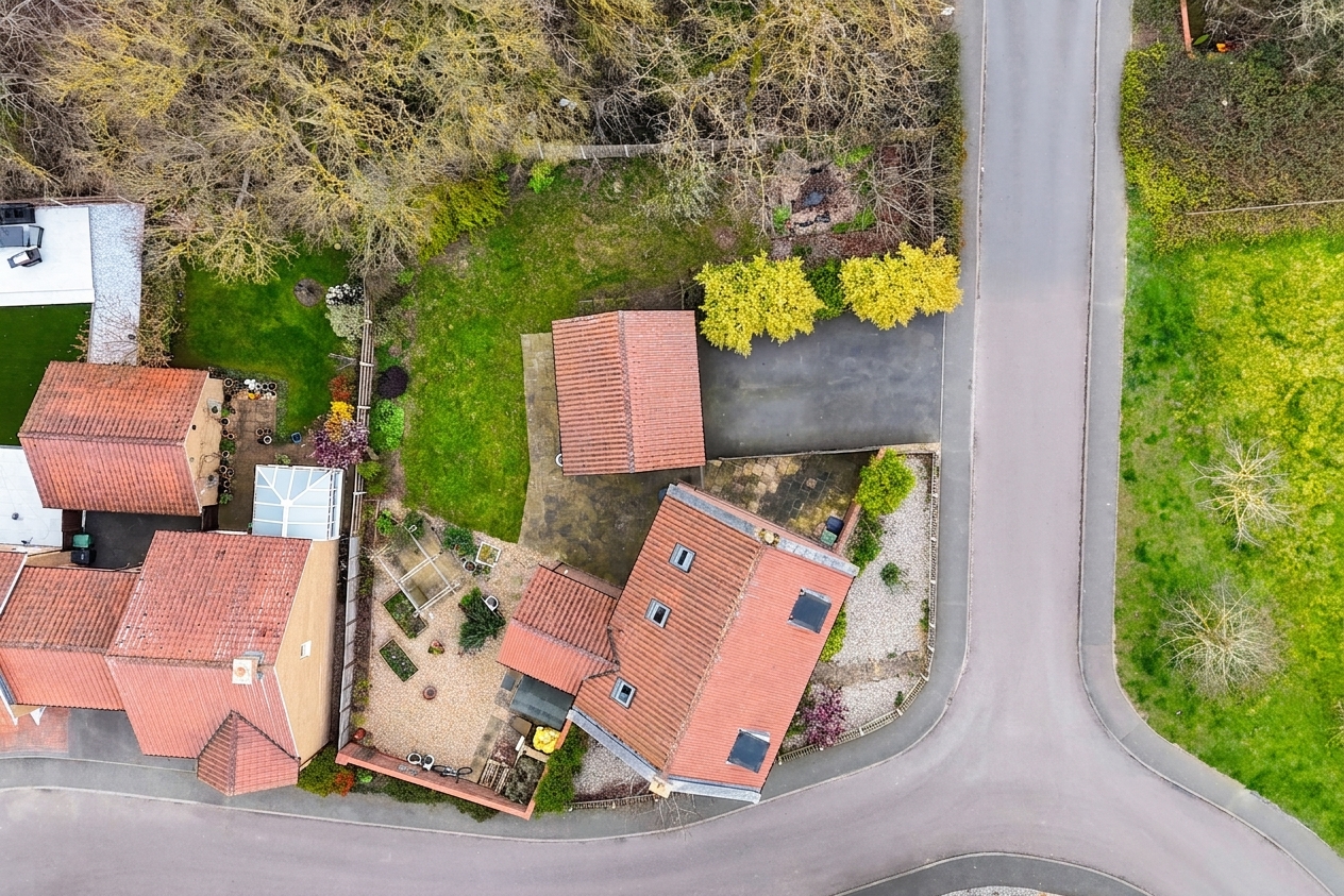 The property is set back from the street sitting opposite an open green space adding to the privacy and peaceful setting of this home. A low level picket style wooden fence sits around the front of the home separating it from the public footpath with a large shingle bedding and mature planted shrubs adding vibrancy to the outside of the home paired with a beautiful wisteria which when in bloom adds a particular vibrancy to the exterior of this home. To the right hand side a large double driveway allows for the parking of multiple vehicles sat in front of the detached brick double garage with EV charging capabilities.