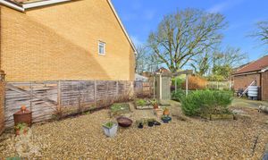 THE GREAT OUTDOORS The rear garden is much larger than average due to the property's position on the development occupying a corner plot. Immediately as you exit the home from the utility room, a private and well positioned flagstone patio creates the ideal space for some garden furniture and to host family and friends. The majority of the garden is laid to lawn and stretches out from the very rear to the right hand side of the home giving a multitude of potential options for buyers needs including a potential extension if required (stp). The garden is fully enclosed with timber panel fencing running to the right hand side and rear of the home with brick wall coming to the left in front of the shingle planting area and hard standing for a timber shed.