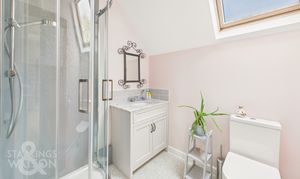 The second floor offers two further incredibly well proportioned bedrooms, both of which being relatively similar in size with the slightly larger coming to the right hand side. Each bedroom features part vaulted ceilings with velux windows and a dual facing aspect with the added addition of built in storage spaces. Sat between each of these is another family shower room which too has been tastefully decorated by the current owners with dual mounted shower heads including a rainfall shower head, vanity storage and heated towel rail.