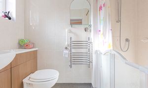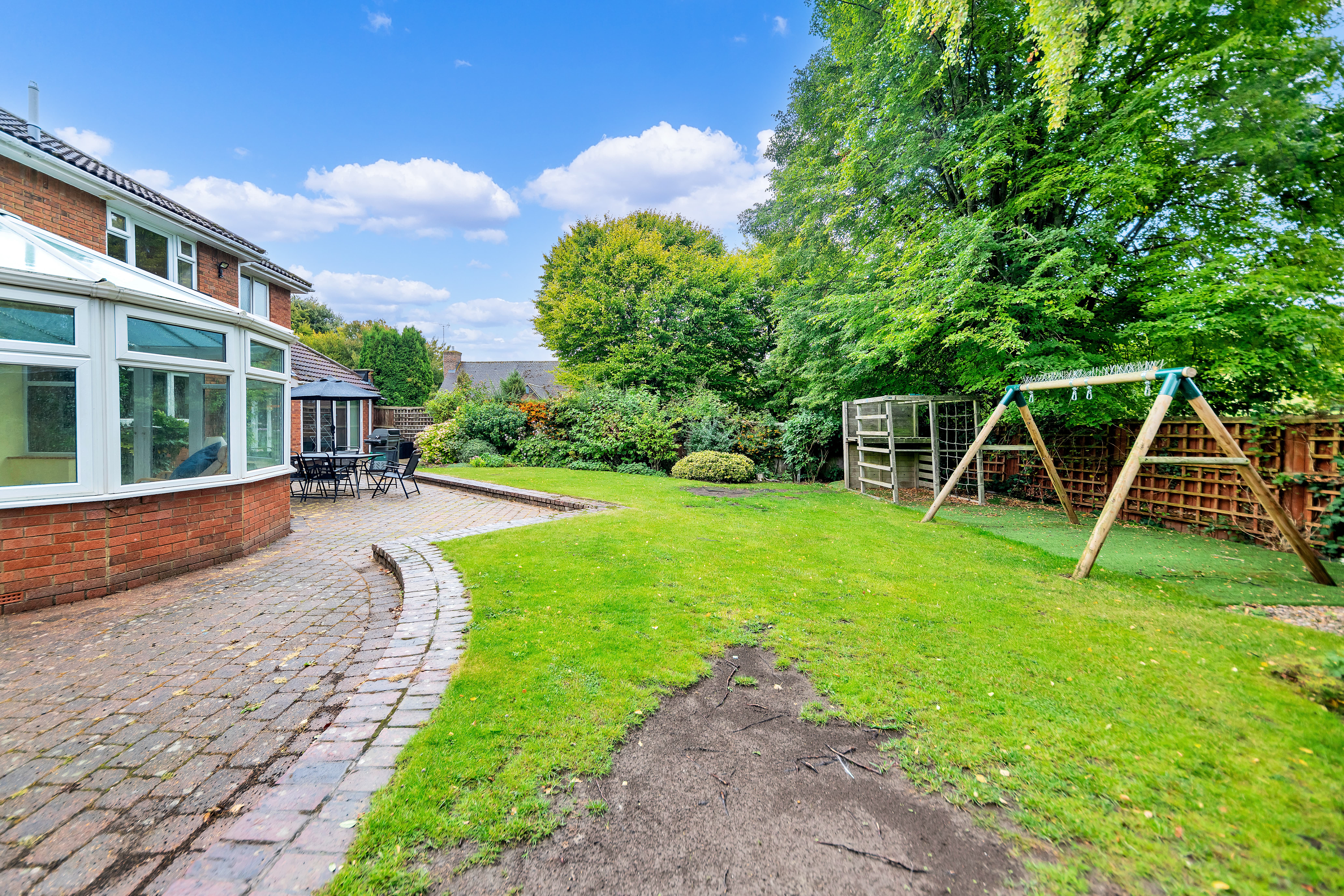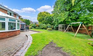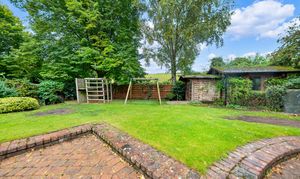 Outside, to the rear, the south-facing garden is a very good size, fully enclosed by fencing and offering wonderful open field views. The garden is laid mainly to lawn, with a large block paved terrace ideal for al fresco dining and entertaining. It also features well-maintained borders and beds, a fountain, floodlighting, and a raised vegetable patch. There is power to the shed for added convenience, and the garden enjoys direct access to a nearby bridle path, perfect for country walks. The property also offers ample built-in storage throughout, making it as practical as it is attractive.