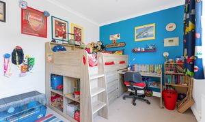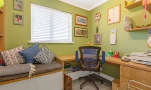 The fifth bedroom can also be found on the ground floor, and could be used as a larger study space or guest suite, if desired. Upstairs, a recently fitted additional study offers even more flexibility for home working or creative pursuits.