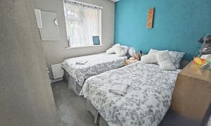Was a garage but now no access for vehicle used for storage and spaces for fridge freezer etc.,