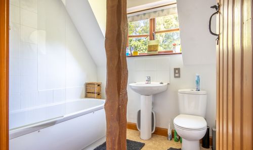 A fully equipped ensuite bathroom, with shower, basin, WC and bath.