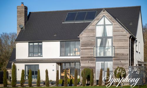 The property has a large garden which is predominantly lawn. The front garden has some fruit trees, and the entire garden is incredibly private from its high hedge perimeters. The rear of the property is a further lawn area with a pathway from the parking area and detached garage.
