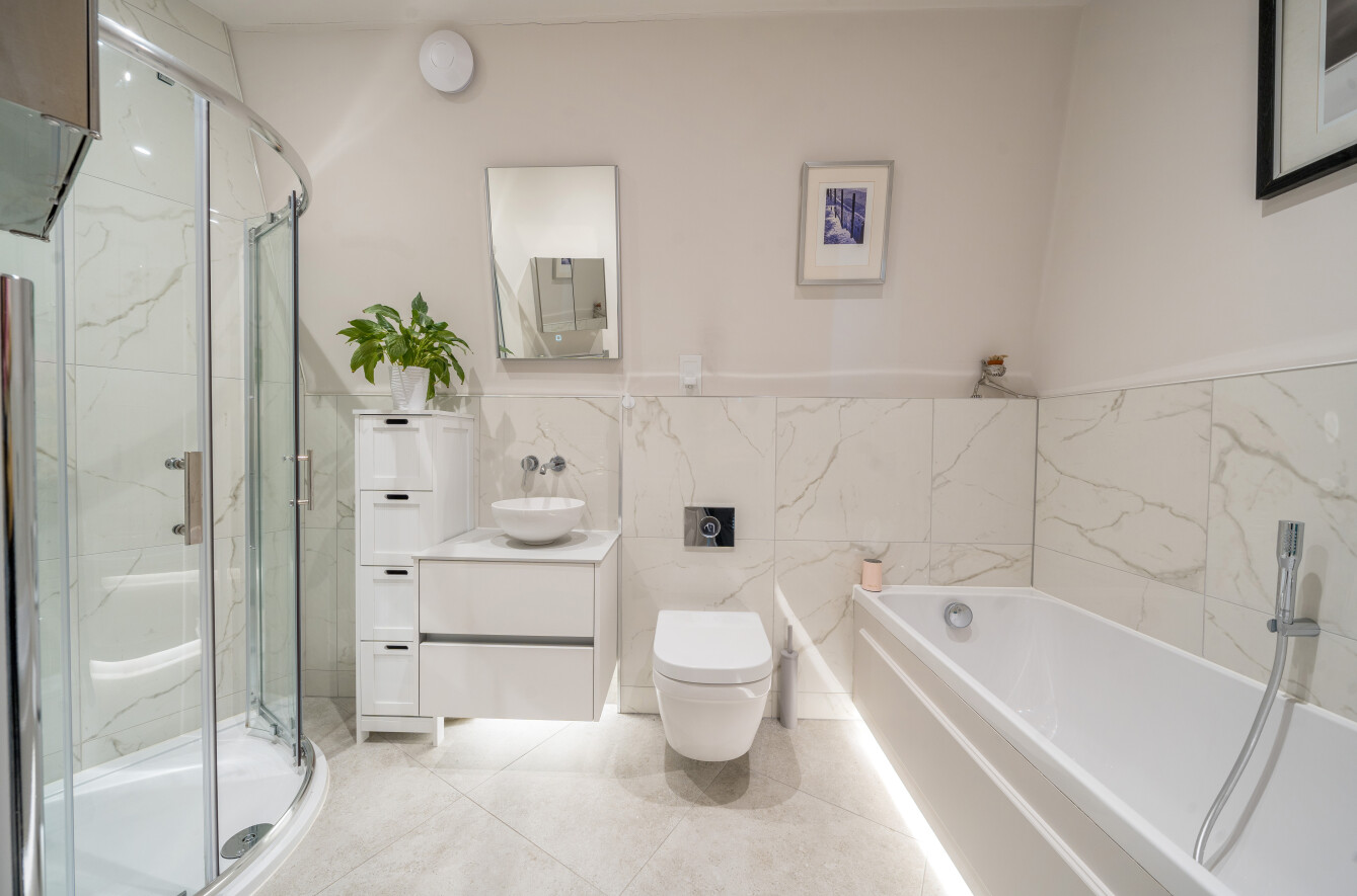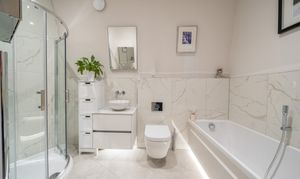 The high specification includes Schuller units under quartz work tops and Bosch integrated appliances, Amtico flooring where laid and underfloor heating in the en-suite and bathroom.
