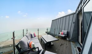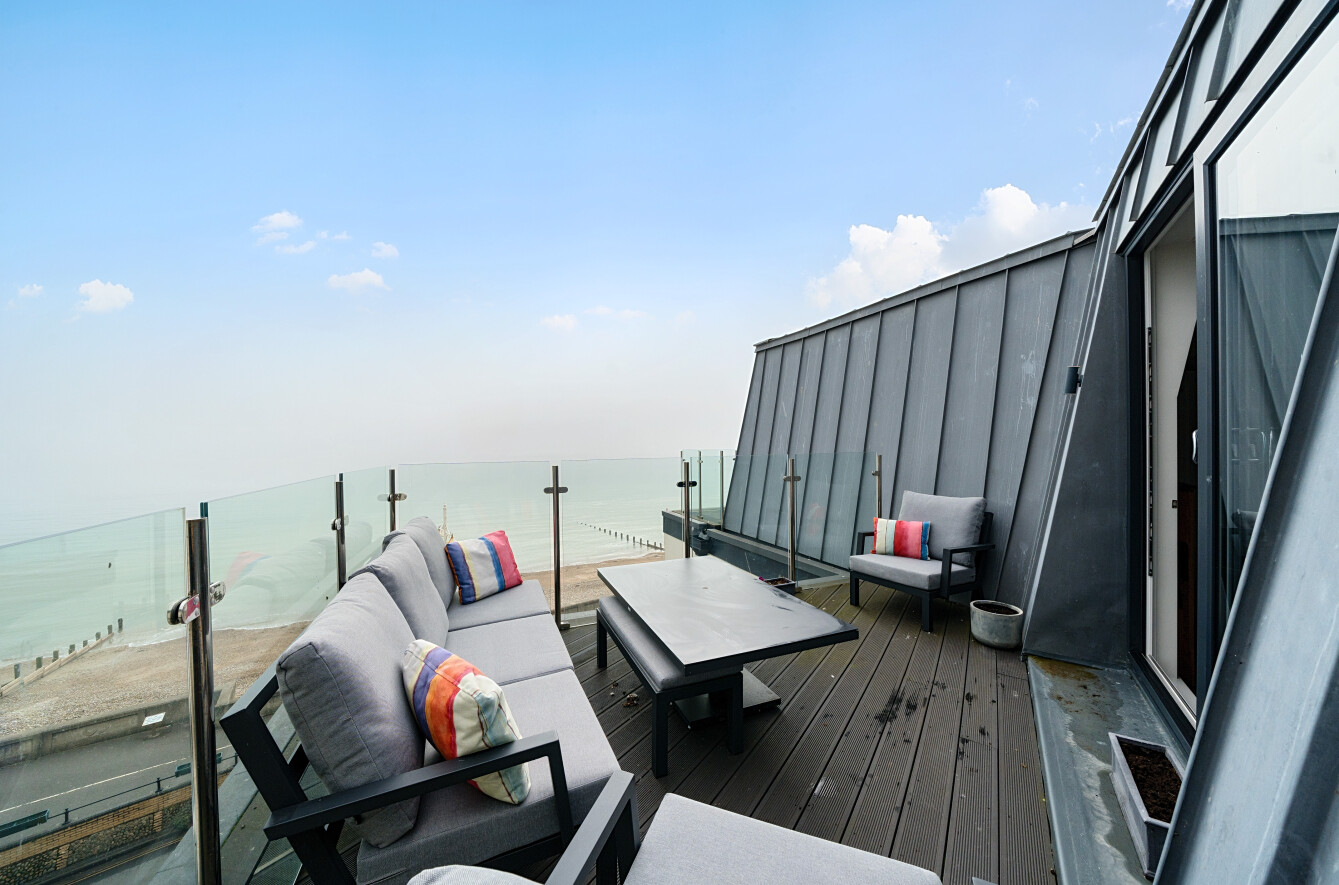This stunning penthouse seafront apartment is part of ‘The Royal’ and sits proudly opposite to the promenade, the pier and betwixt Waterloo Square and The Steyne Gardens. The Royal is a beautiful regency building which has been re-imagined by a local developer recently.