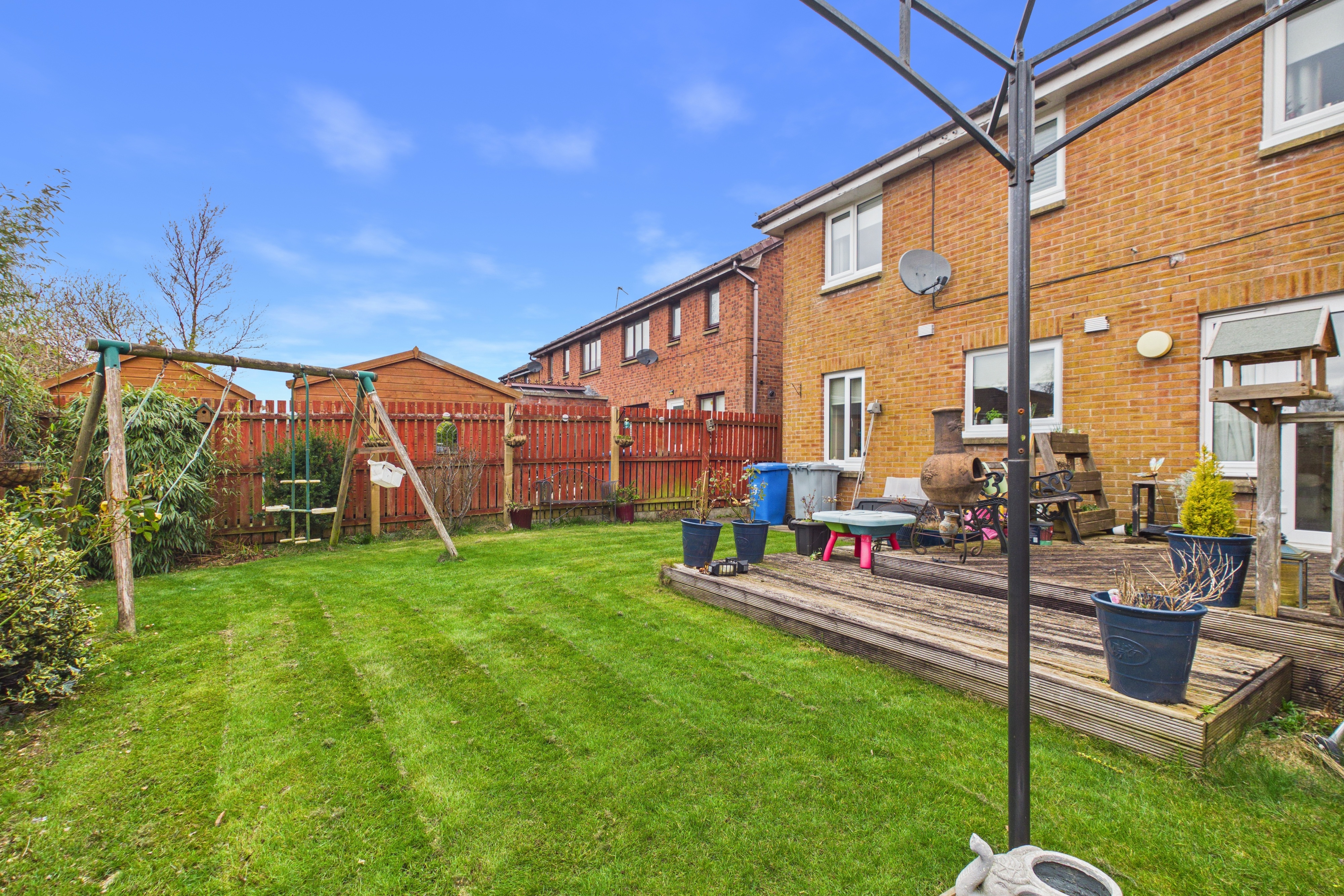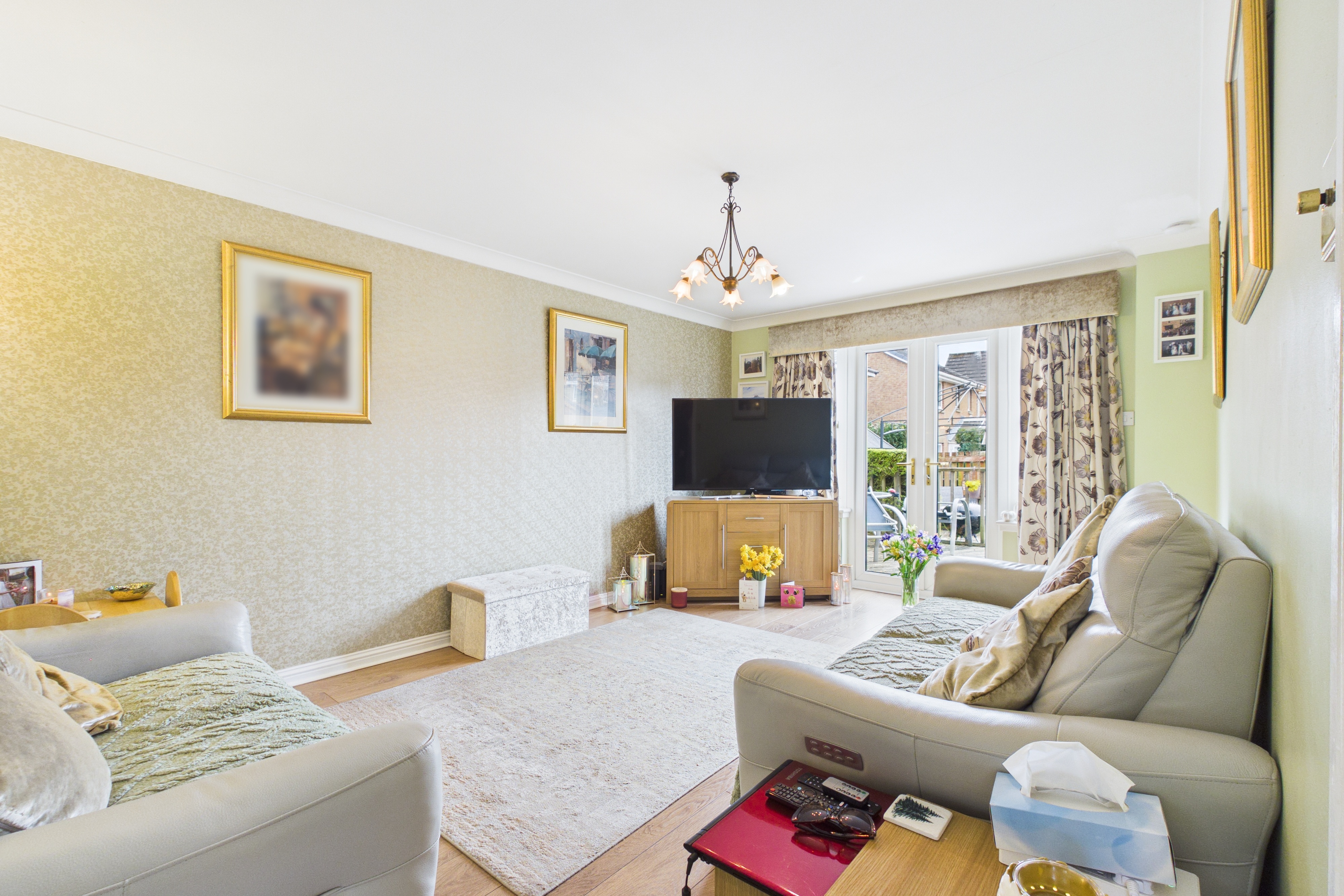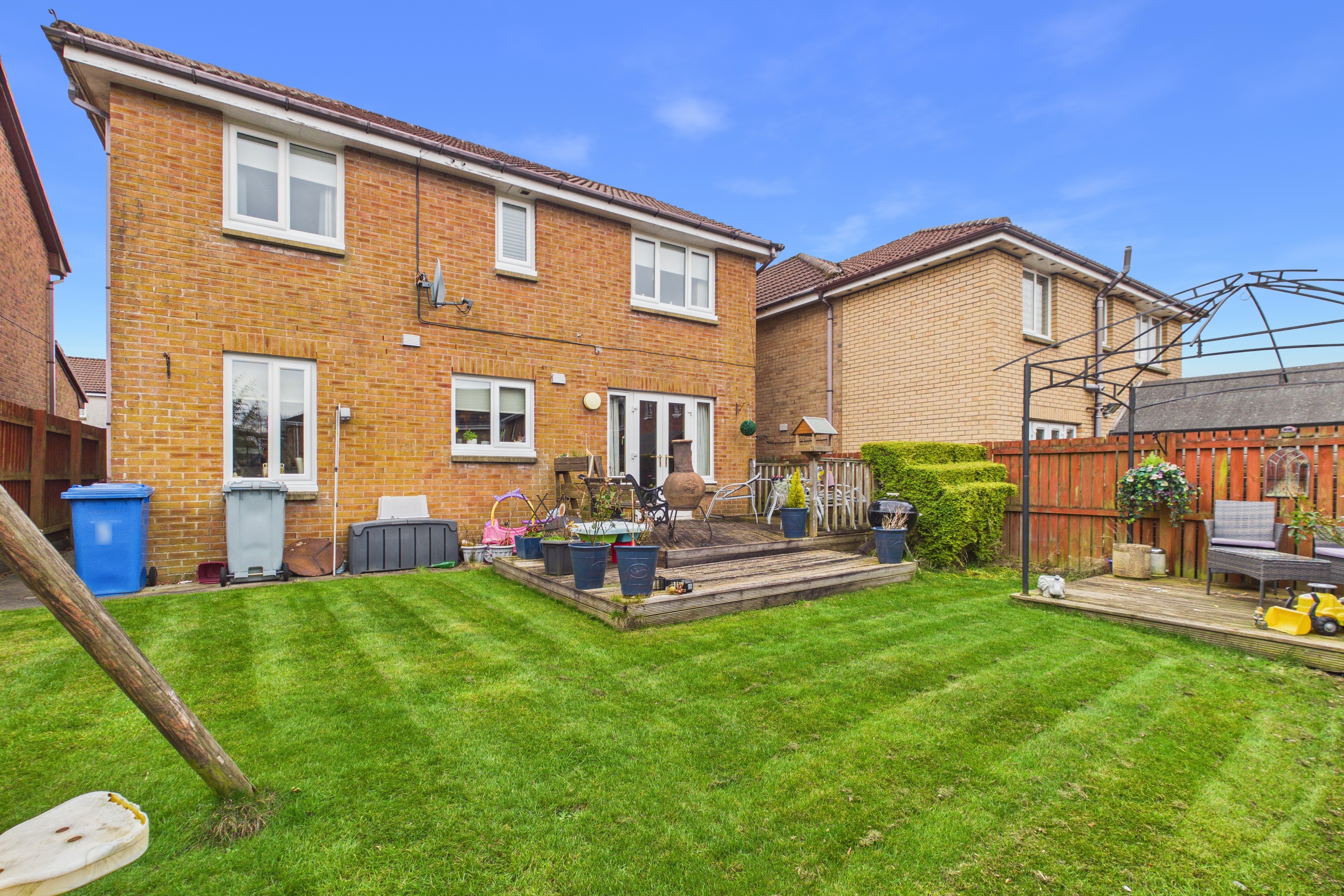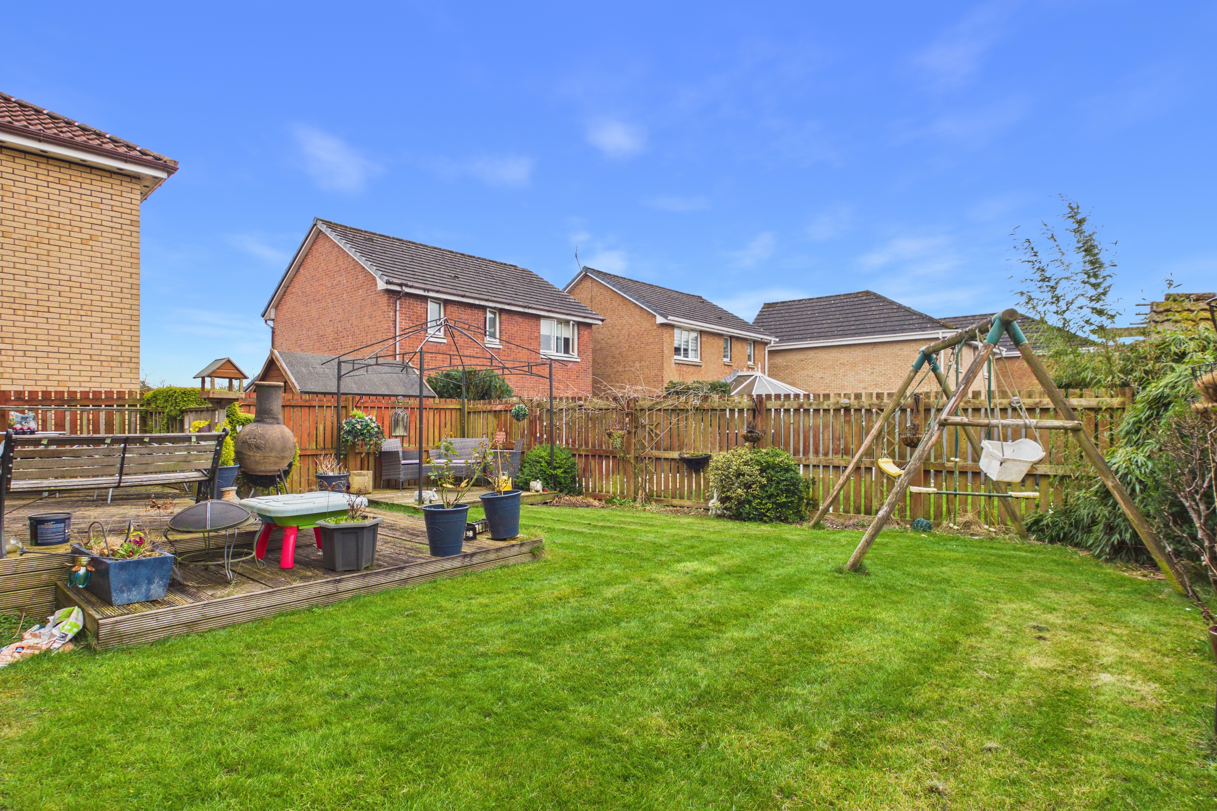 Externally, the home sits within beautifully maintained gardens, including two decked patios, neat lawns and paved pathways. The fully enclosed rear garden offers a high degree of privacy, making it ideal for families and pet owners alike. To the front, a driveway provides ample off street parking and access to the garage, which also benefits from integral access.