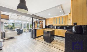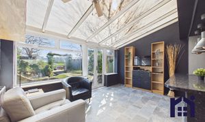 Leading off is the dining kitchen, thoughtfully arranged with a central island and breakfast bar, alongside a range of wall and base units and a suite of appliances including range cooker, refrigerator, freezer, dishwasher and washing machine. Completing the ground floor is the sun room, offering generous space for both dining and relaxation while enjoying views over the garden.