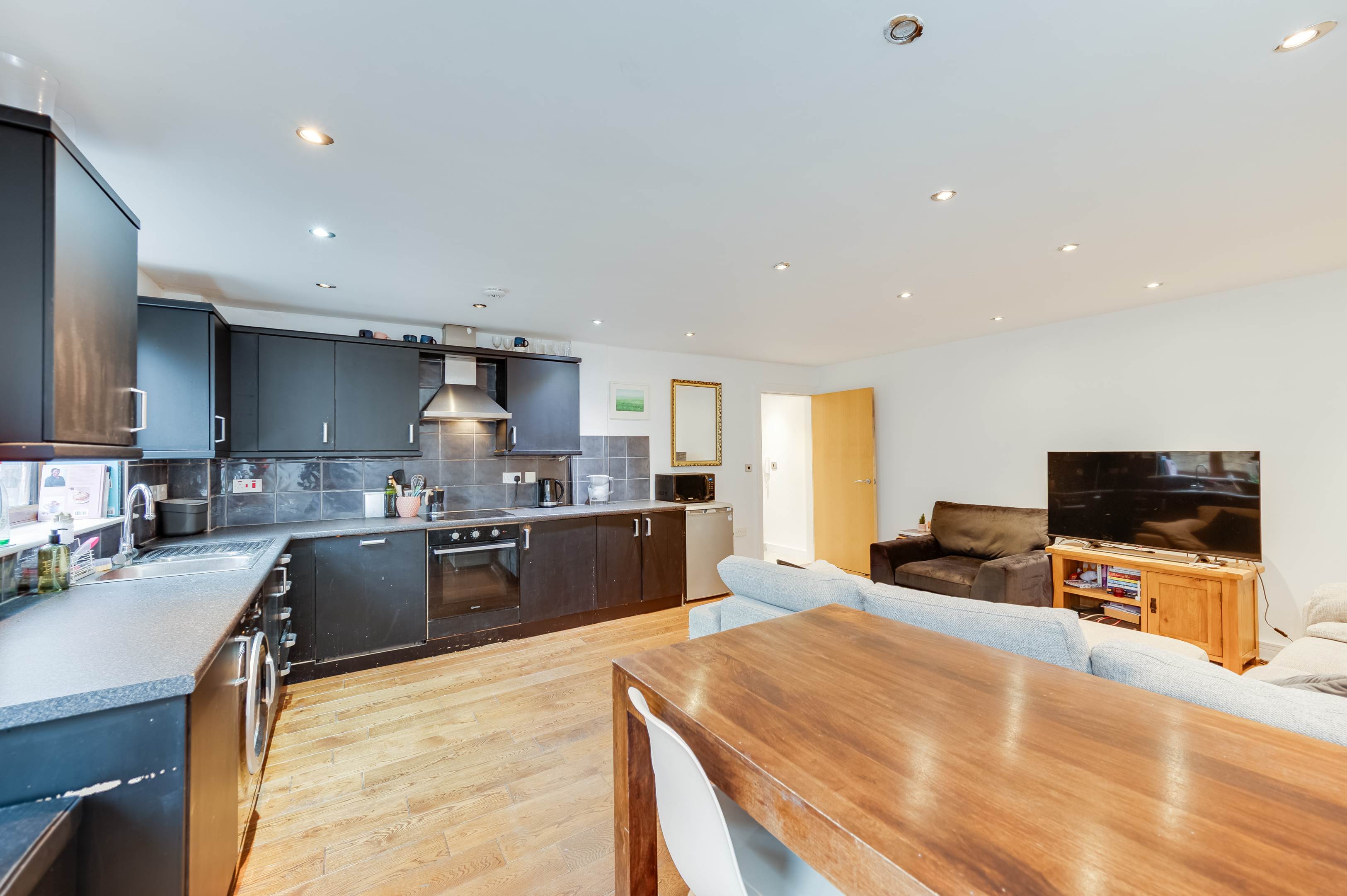- OPEN PLAN CONTEMPORARY LIVING DINING ROOM WITH FITTED KITCHEN
