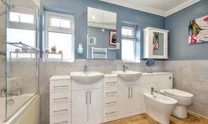 The first floor comprises three well-proportioned bedrooms. The generous principal bedroom benefits from a modern en-suite shower room. Two further bedrooms provide excellent accommodation for family members or guests and are served by a well-designed family bathroom.