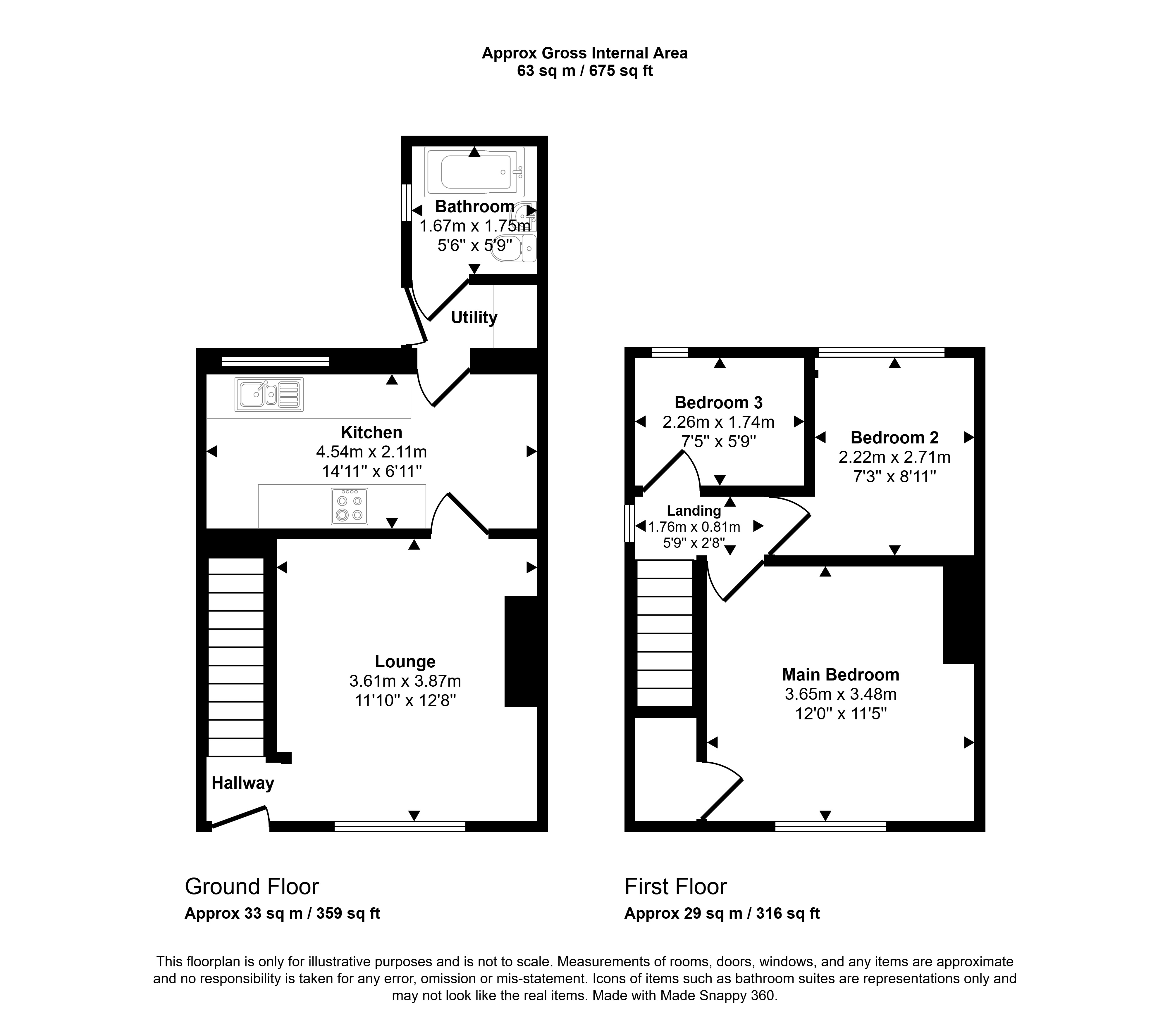 The accommodation briefly comprises an entrance hall, a spacious lounge, a kitchen and a family bathroom on the ground floor. Upstairs there are two well proportioned double bedrooms and a comfortable single bedroom.