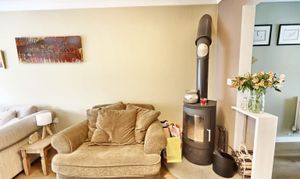 Upon entering, the inviting entrance hall sets the tone for the rest of the home with wooden flooring which follows through into the living rooms and there is a convenient ground floor WC. The spacious lounge is a focal point of the property, featuring a striking multi-fuel burner that adds warmth and character to the room. The adjacent dining room, with its patio doors, offers a seamless transition to outdoor dining or relaxation.