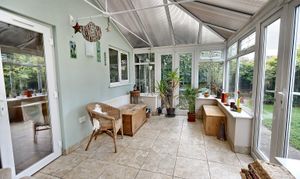 The fitted dining kitchen is a chef's delight, providing a functional space for preparing meals and hosting gatherings. Adjoining the kitchen is a delightful conservatory, perfect for enjoying the verdant views of the surrounding gardens while savouring a morning cup of coffee or an evening glass of wine.