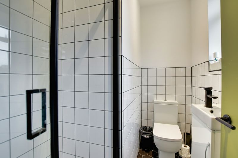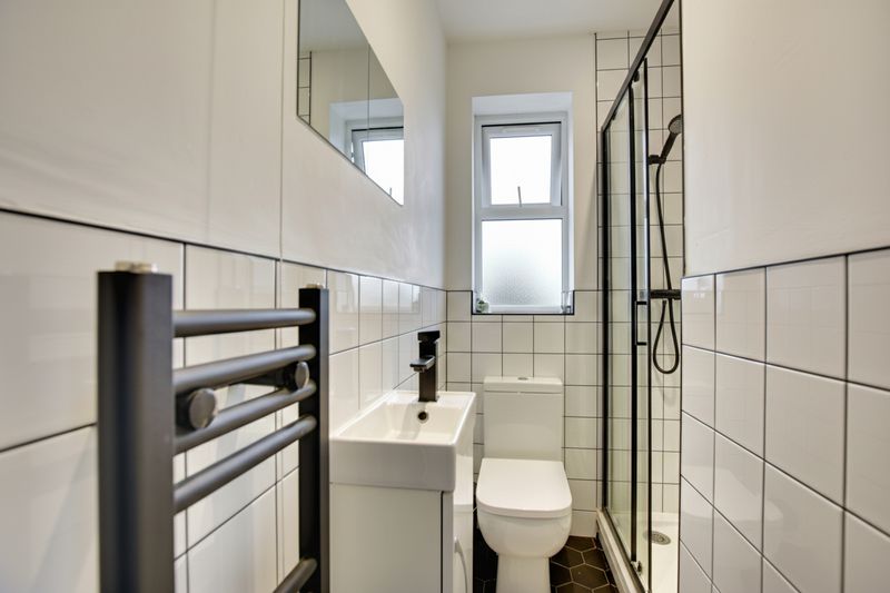 To the first floor are three further bedrooms along with two separate shower rooms, both fitted with WC facilities, helping to support the HMO layout.
