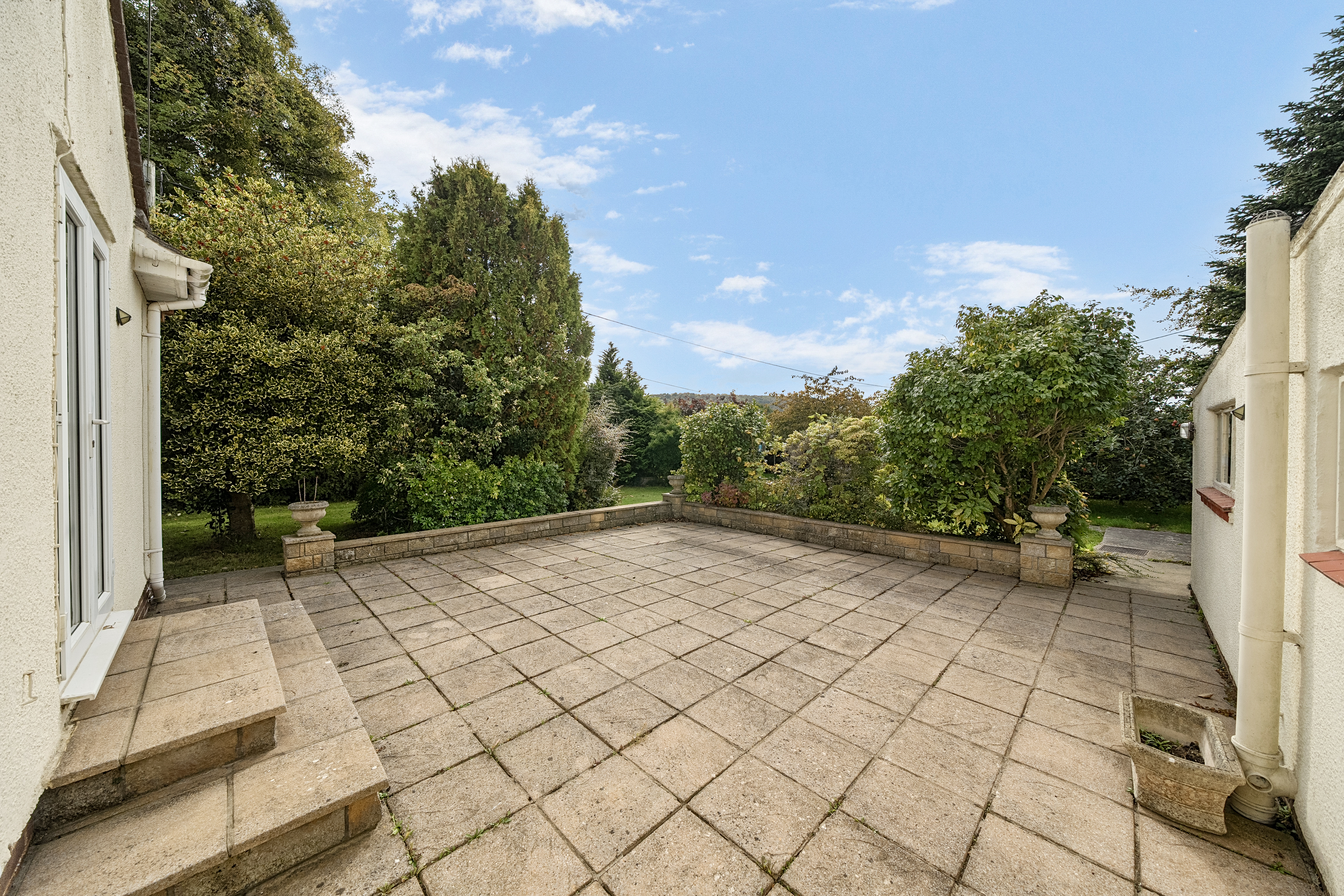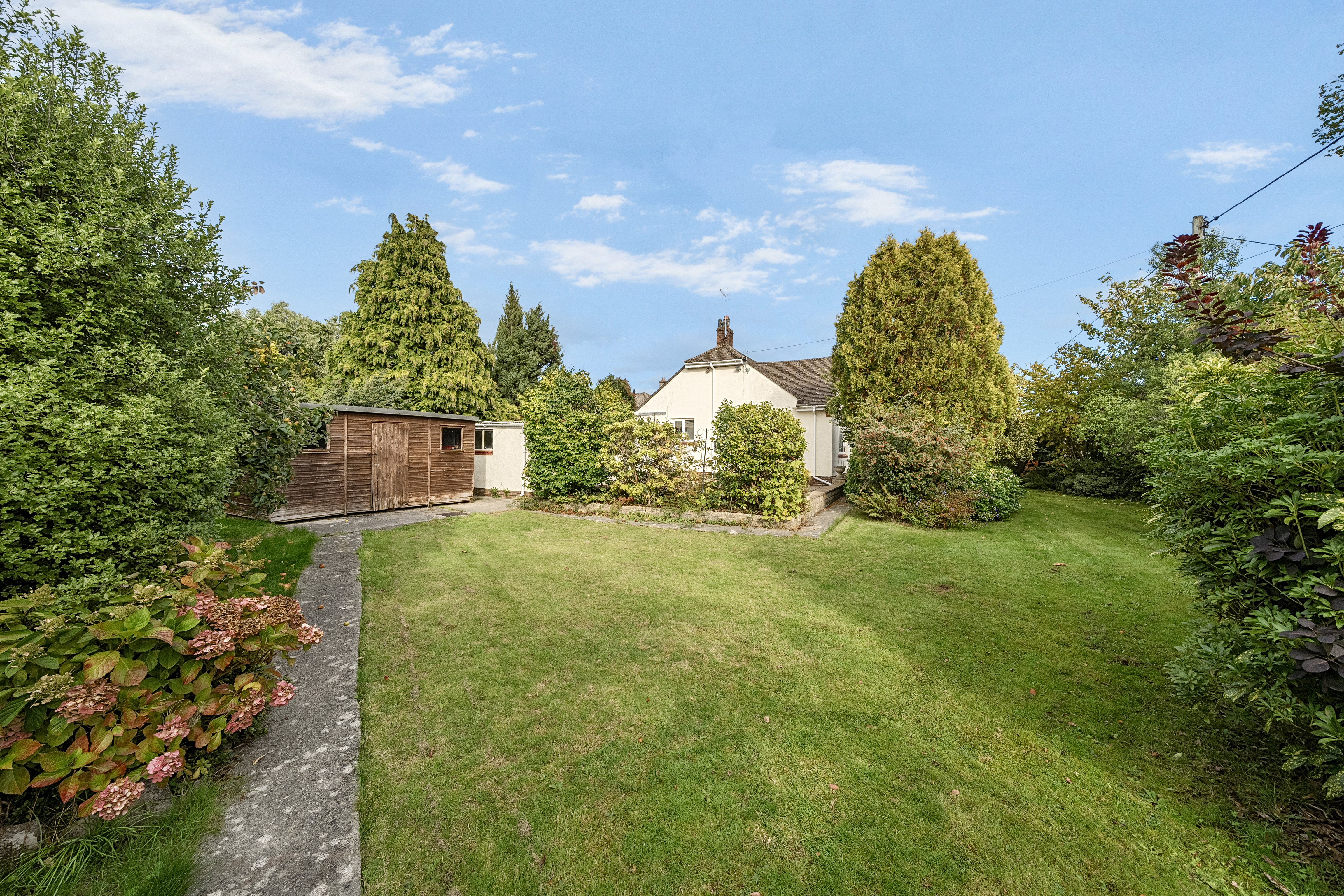 The garden is a real highlight. The rear of the property backs onto open farmland, providing a pleasant sense of privacy. A spacious patio area is perfect for outdoor dining, while lawns sweep around two sides of the bungalow, bordered by mature shrubs, trees, and fruit trees. A large shed provides additional storage.