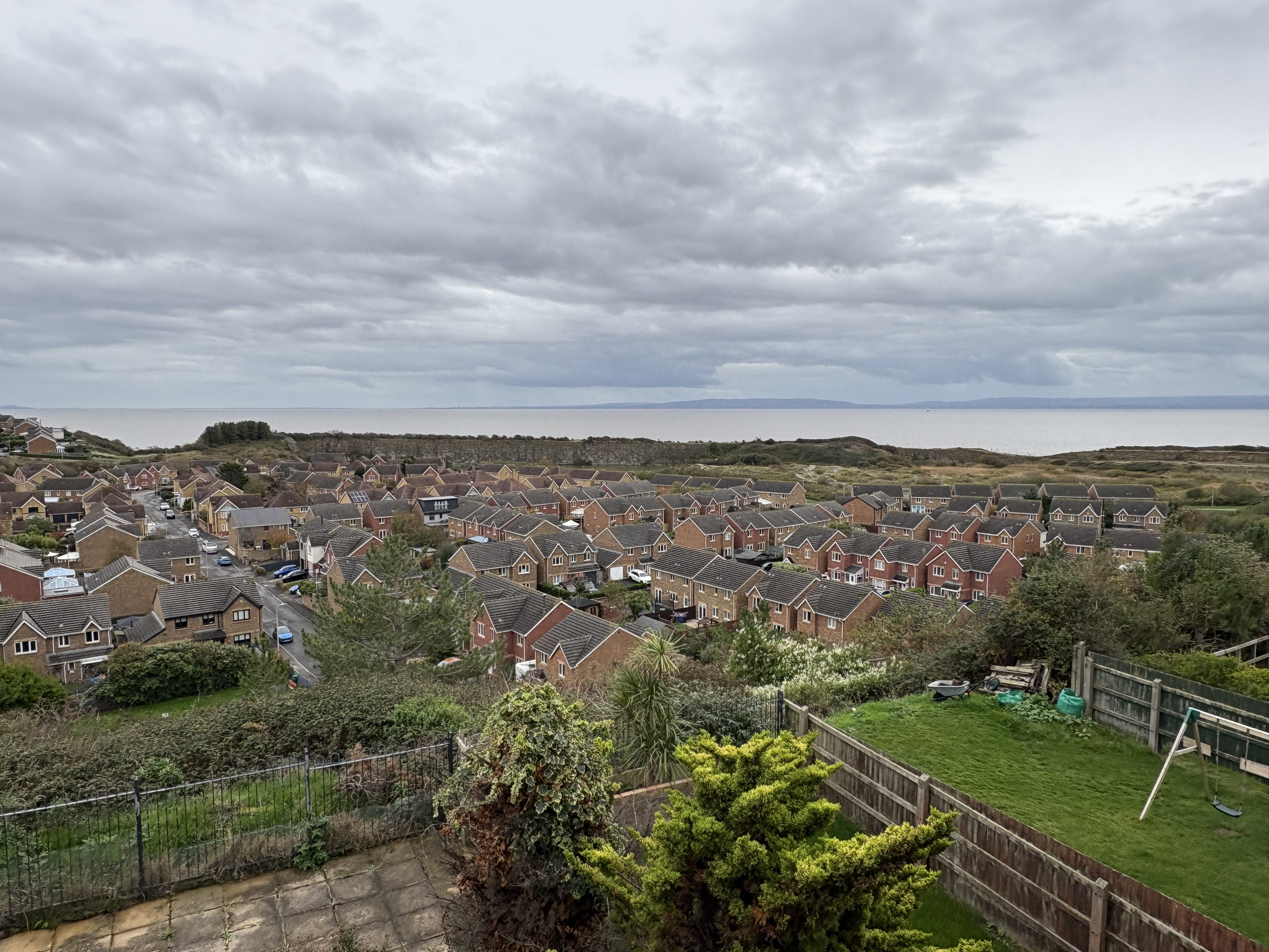 A carpeted main bedroom with near full height rear window with glorious open views towards the Bristol channel. There are three recessed double wardrobes, a smooth coved ceiling and radiator. A panelled door leads to the en-suite.