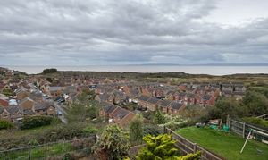 The rear garden has an initial area of slabbed patio with a lawn bisecting path leading to a final raised patio to afford the channel views. There are several trees and planted borders and an outside tap.
