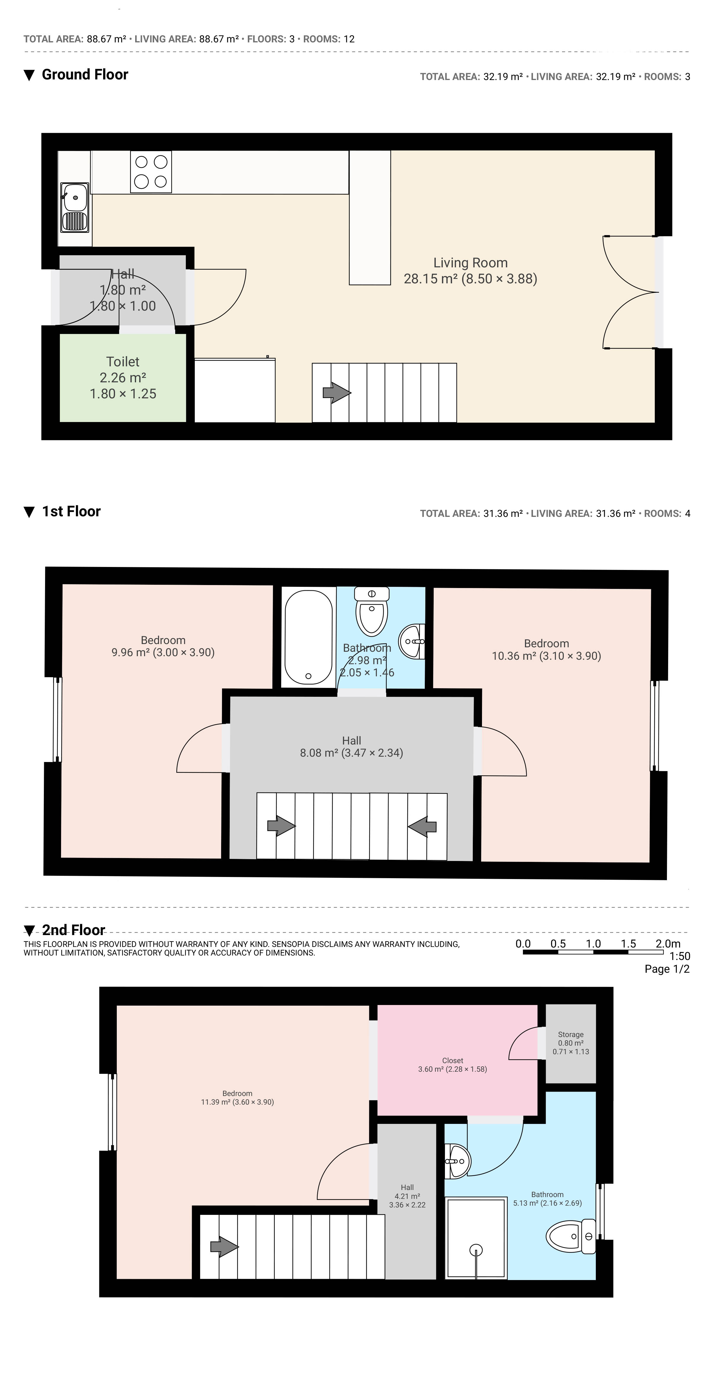 The second floor boasts two double bedrooms and a family bathroom, with the third floor showcasing the master bedroom, dressing room, additional storage and en-suite.