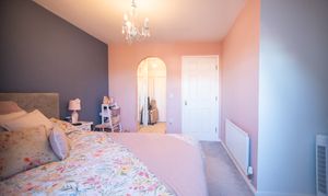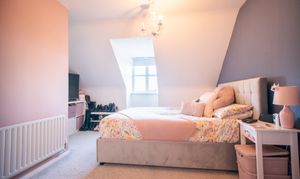 With laminate flooring, radiator, window and walk way to closet and en-suite.