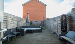 Upon entry, you are met with a separate hallway that leads to the well-equipped kitchen and spacious living room, with French doors to the private garden featuring a delightful and versatile combination of decking and lush green grass.