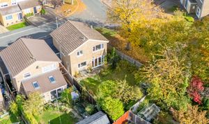 Outside, the mature rear garden is a true highlight. A stone pathway winds through established planting and lawn, with space for outdoor dining and a greenhouse to the rear. To the front, there is driveway parking, a garage, and a neatly kept lawn.