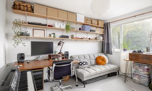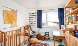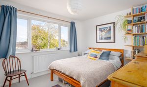 Upstairs, three well-proportioned bedrooms offer flexible accommodation, ideal for a family, home office, or guest space, served by a fresh, fully tiled bathroom. Each room benefits from wide windows that fill the home with daylight and provide pleasant views across the neighbouring rooftops and trees.