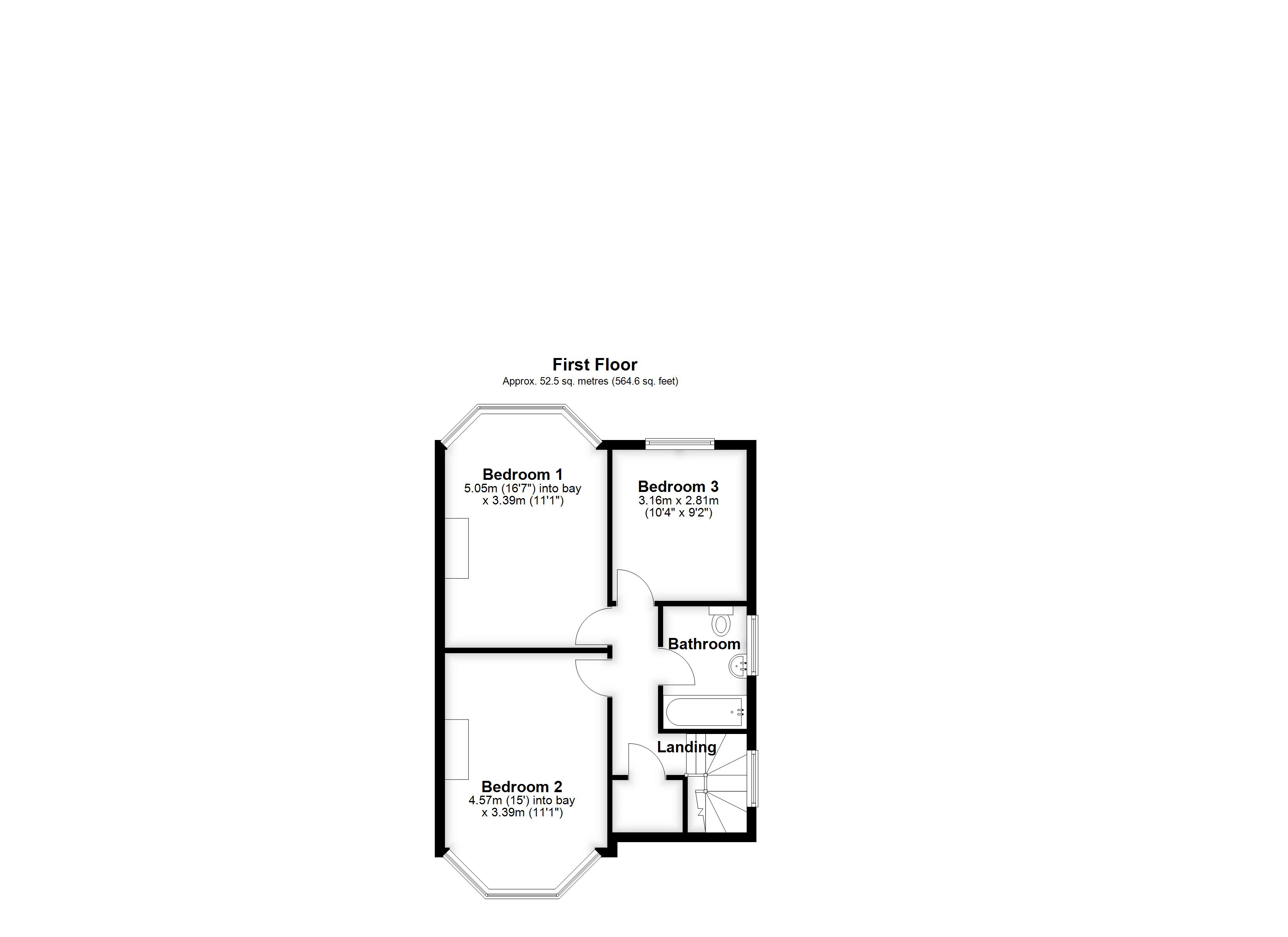 Bedroom 1 5.05m (16'7") into bay x 3.39m (11'1")