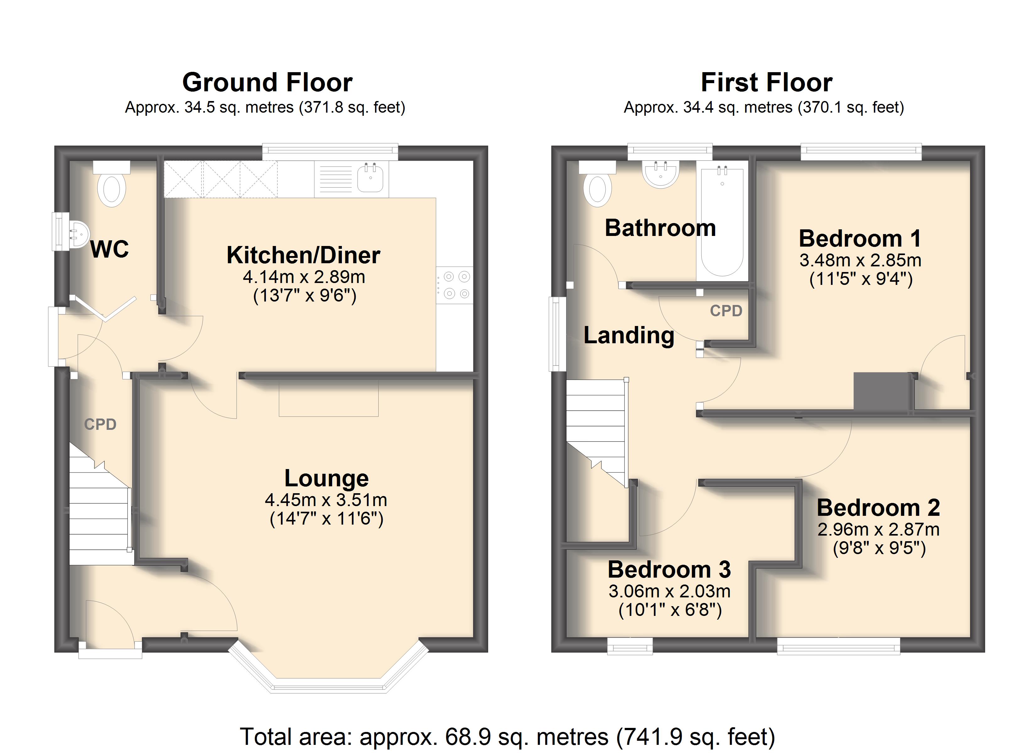 At the front of the property sits a generously proportioned bay-windowed lounge, filled with natural light. Moving through to the rear of the home, the open-plan fitted kitchen and dining area creates a versatile and sociable space, perfect for family meals or hosting friends. The ground floor also features a convenient downstairs W.C, adding to the property’s functionality for busy family life.