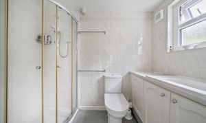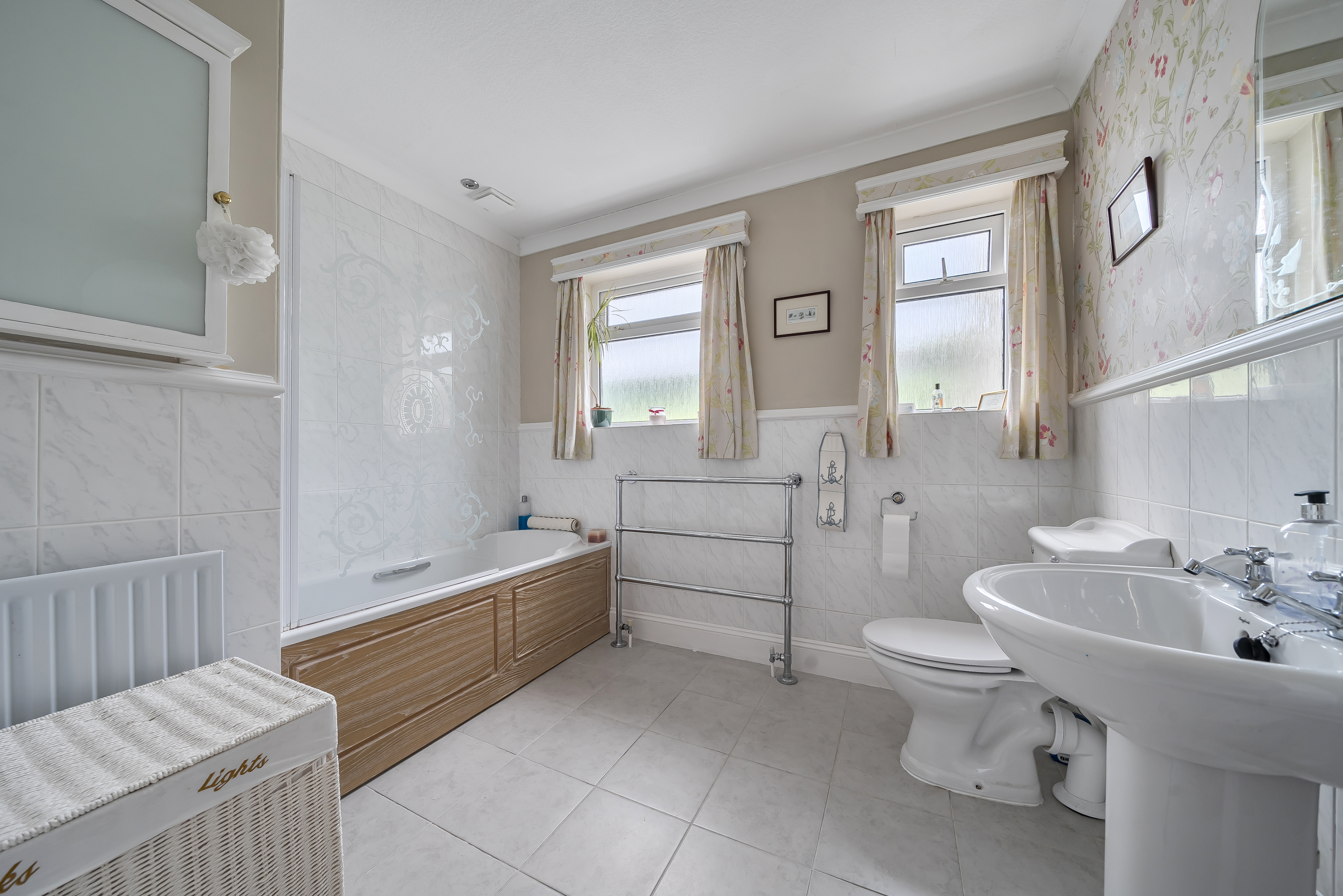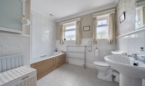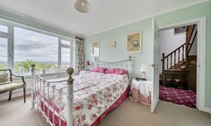 Two bedrooms are located on the ground floor the first of which includes fitted wardrobes and excellent views, with a hidden hatch leading to a cellar room currently used as a study, with natural light from a side window. The second ground floor bedroom also enjoys front aspect views. A modern family bathroom with a white suite and airing cupboard completes this level.