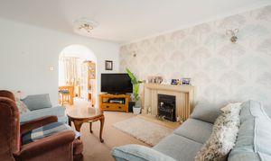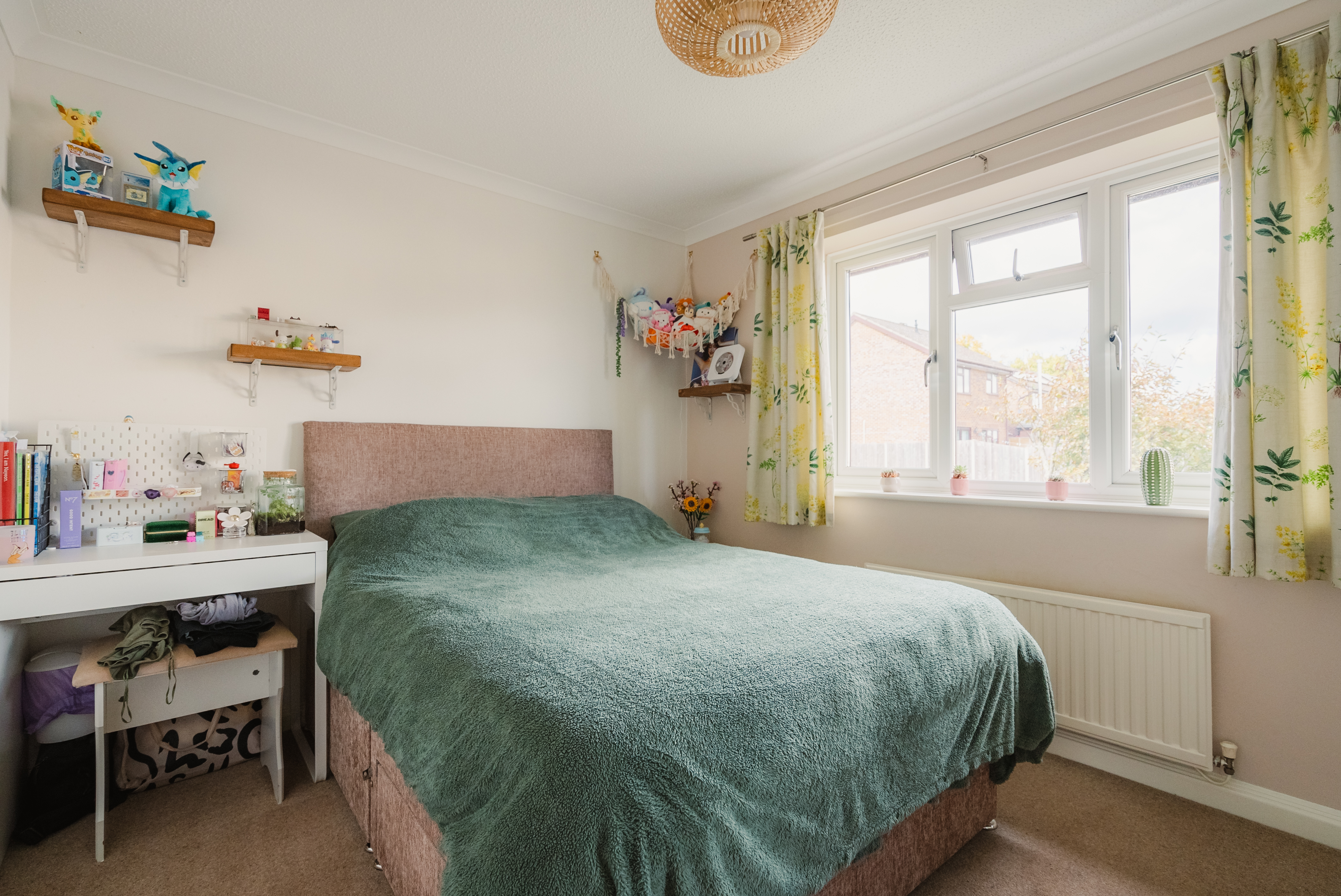 Outside to the front is an area of lawn and the driveway leading to the garage. It’s worth mentioning that several of the neighbours have increased the driveway to give additional off-road parking. To the rear is a good-sized garden, south facing and with lawn, a couple of choices of seating areas, raised beds with the opportunity to grow your own veggies and a timber garden shed.