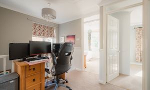 This detached family home is well situated in the middle of Beech Park with a south facing rear garden and occupying a good-sized plot. The layout offers a welcoming central hallway with access to the living room with its feature fireplace and archway through to the separate dining room. The dining room (which could be opened to the kitchen if desired STP) has sliding doors out onto the garden terrace, ideal for al fresco dining. The kitchen is well fitted with a range of modern units with black counter tops and integrated appliances including oven, hob and extractor. We really love the use of the space behind the garage which has been enclosed to form a separate utility area and with doors to the rear garden and to the garage without needing to go outside. On the first floor, the four bedrooms give two doubles and two singles with a family bathroom serving all four, all off a large central landing which is currently used as a useful study area. The views from the rear bedrooms are wonderful being south facing.
